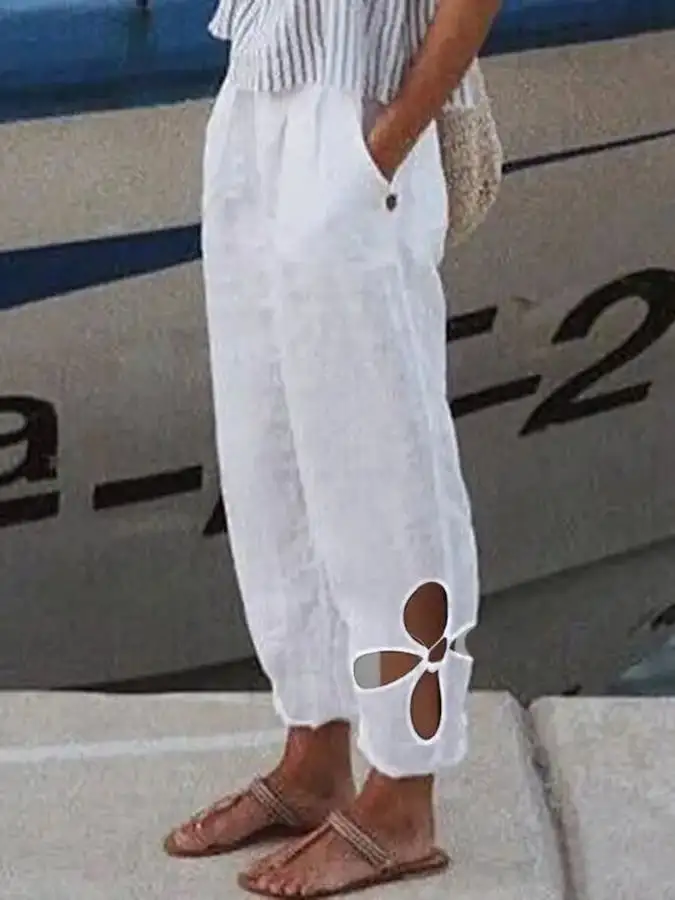 Women's Cotton Casual Cut-Out Pants With Pocket