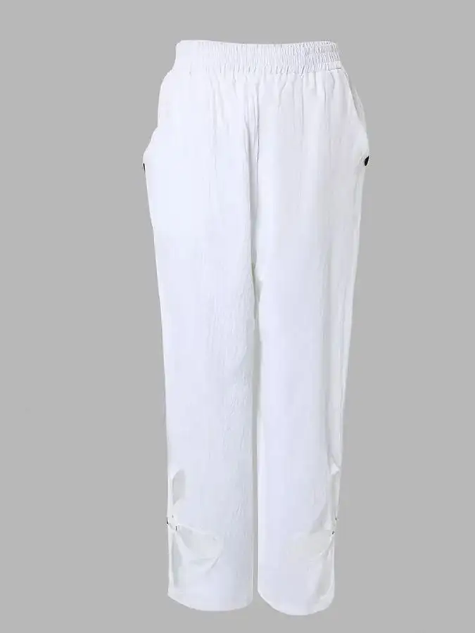 Women's Cotton Casual Cut-Out Pants With Pocket 314507