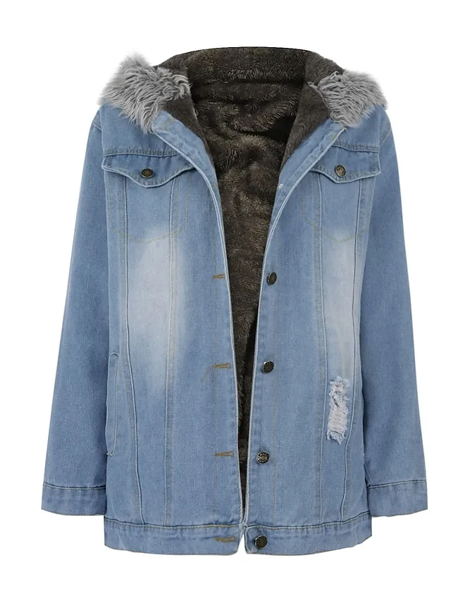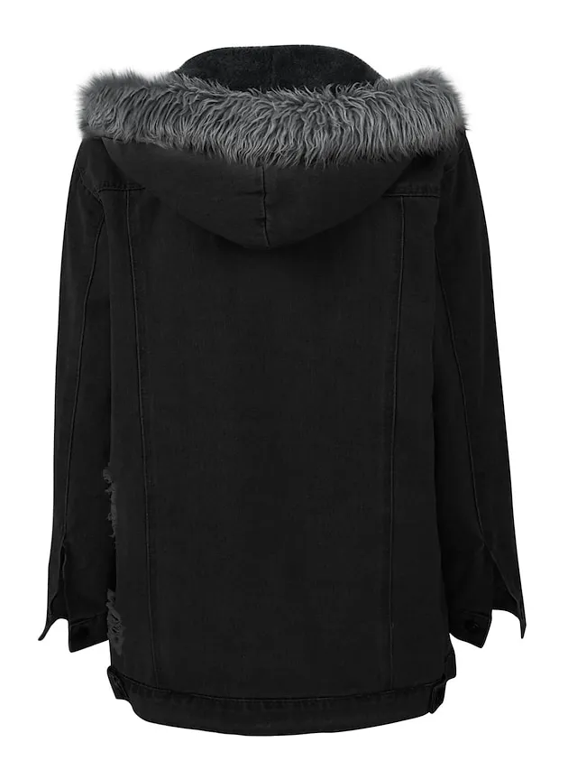 Gender:Women's,Outerwear Type:Denim Jacket,Hoodie Jacket,Occasion:Daily,Season:Winter,Fall,Fabric:Polyester,Placket:Single Breasted,Style:Streetwear,Outerwear Length:Regular,Design:Pocket,Neckline:Hoodie,Details:Lined,Sleeve Length:Long Sleeve,Fit Type:Loose Fit,Elasticity:Inelastic,Look After Me:Hand wash,Machine wash,Thickness:Thick,