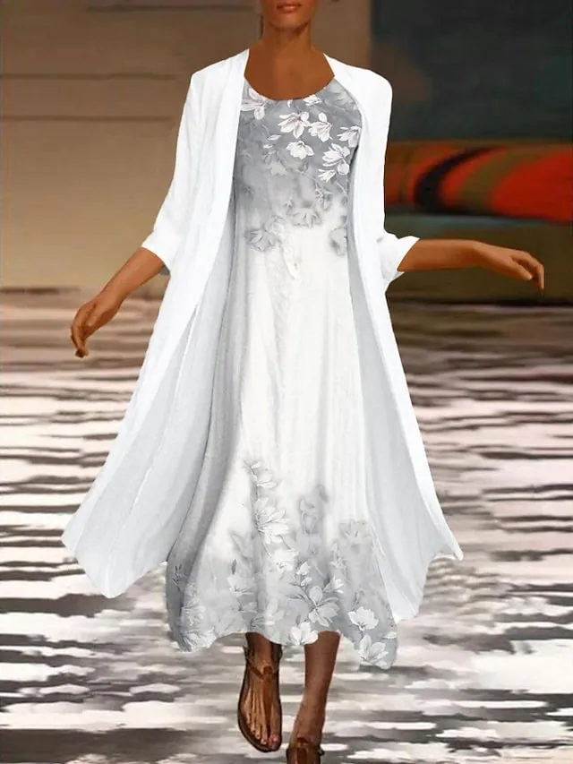 Gender:Women's,Style:Elegant,Casual,Basic,Classic,Occasion:Fall Dress,Weekend,Outdoor,Daily,Vacation,Winter Dress,Dresses Type:Dress Set,Floral Dress,Two Piece Dress,Neckline:Crew Neck,Fabric:Polyester,Chiffon,Design:Print,Sleeve Length:Long Sleeve,Elasticity:Micro-elastic,Look After Me:Machine wash,Pattern:Floral,Season:Winter,Fall,Spring,Autumn,2022 Trends:2022,Fit Type:Regular Fit,Dress Length Type:Midi Dress,