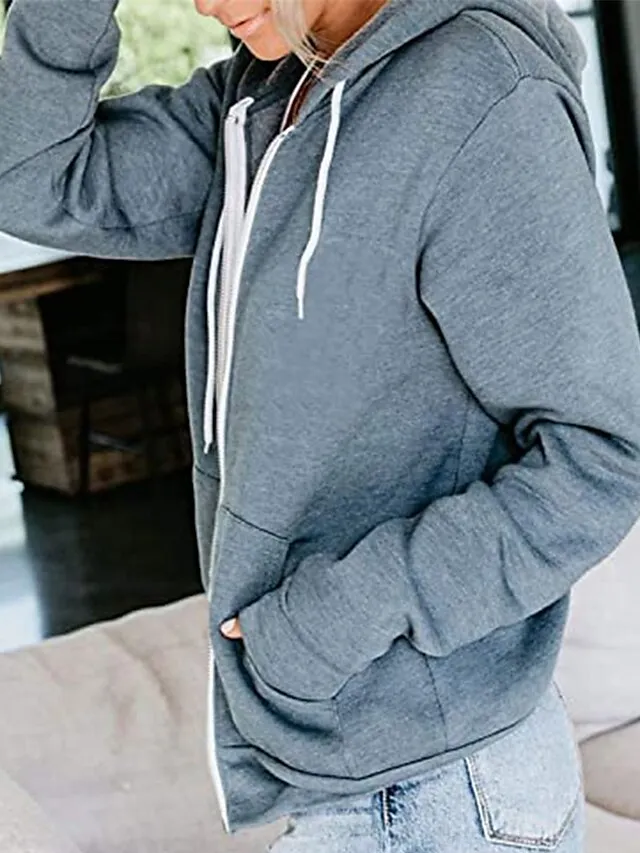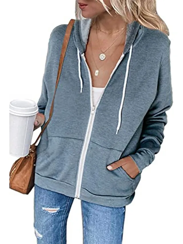 Gender:Women's,Outerwear Type:Casual Jacket,Hoodied Jacket,Occasion:Outdoor,Going out,Sports,Causal,Season:Fall,Summer,Spring,Function:Breathable,Comfortable,Fabric:Cotton,Placket:Zipper,Style:Streetwear,Modern Style,Stylish,Sporty,Outerwear Length:Regular,Pattern:Plain,Design:Pocket,Zipper,Neckline:Hoodie,Sleeve Length:Long Sleeve,Fit Type:Regular Fit,Elasticity:Micro-elastic,Look After Me:Washable,Hand wash,Bust (cm):S:90;M:94;L:98;XL:102;XXL:106,Length (cm):S:63;M:64;L:65;XL:66;XXL:67,Front page:FF,Listing Date:06/30/2023,