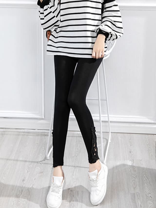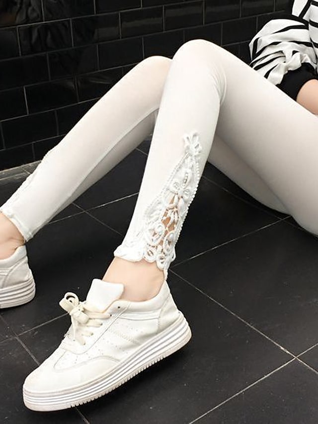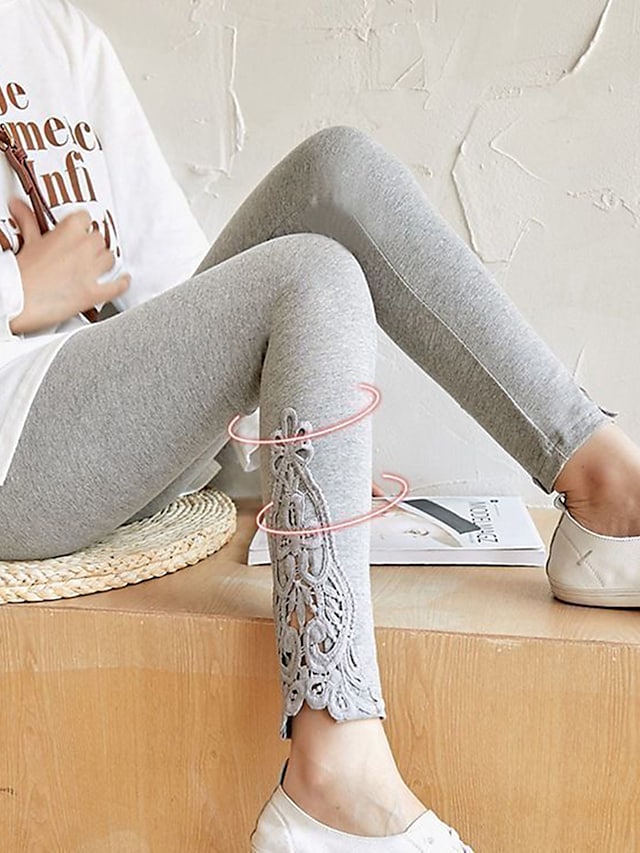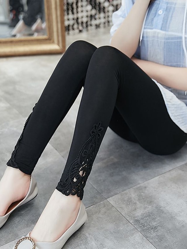 Gender:Women's,Pants Type:Leggings,Style:Fashion,Occasion:Casual Daily,Fabric:Polyester,Design:Lace,Elasticity:Stretchy,Pattern:Solid Colored,Inseam (cm):L:29;XL:29;2XL:29;3XL:29;4XL:29,Function:Comfort,Tummy Control,Butt Lift,Fit Type:Skinny,Pants Length:Ankle-Length,