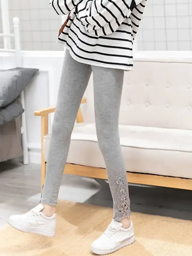 Gender:Women's,Pants Type:Leggings,Style:Fashion,Occasion:Casual Daily,Fabric:Polyester,Design:Lace,Elasticity:Stretchy,Pattern:Solid Colored,Inseam (cm):L:29;XL:29;2XL:29;3XL:29;4XL:29,Function:Comfort,Tummy Control,Butt Lift,Fit Type:Skinny,Pants Length:Ankle-Length,