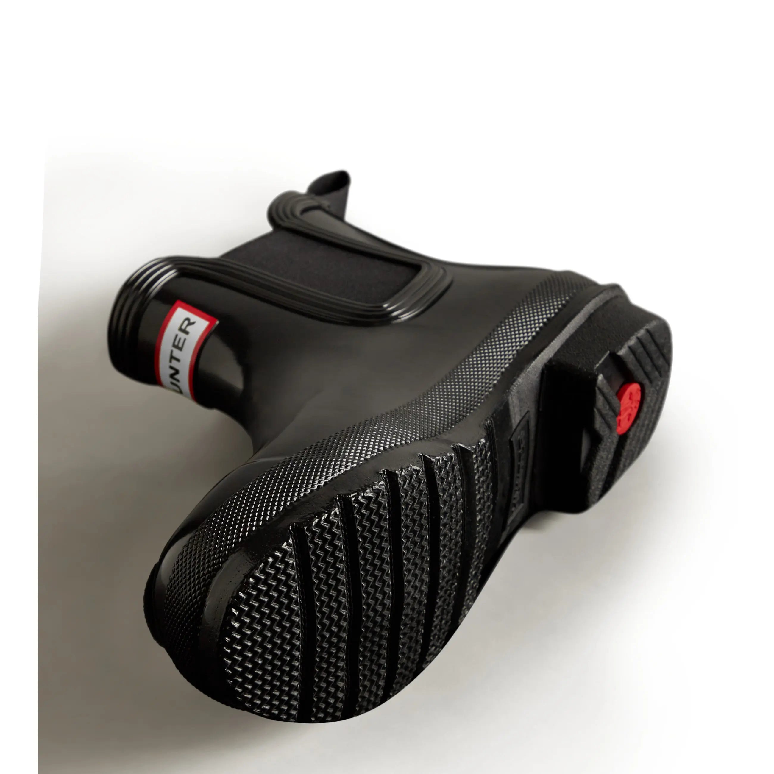 Ready for rain, each Hunter Chelsea Boot is handcrafted from natural rubber and vulcanised for superior protection before having the high gloss finish applied. Retaining the iconic features of the traditional Chelsea, it features an elasticated-gussets and has a nylon pull tab make for easy wear. The Hunter Original tread pattern and comfortable 100% recycled polyester lining completes the design on this 100% waterproof boot.