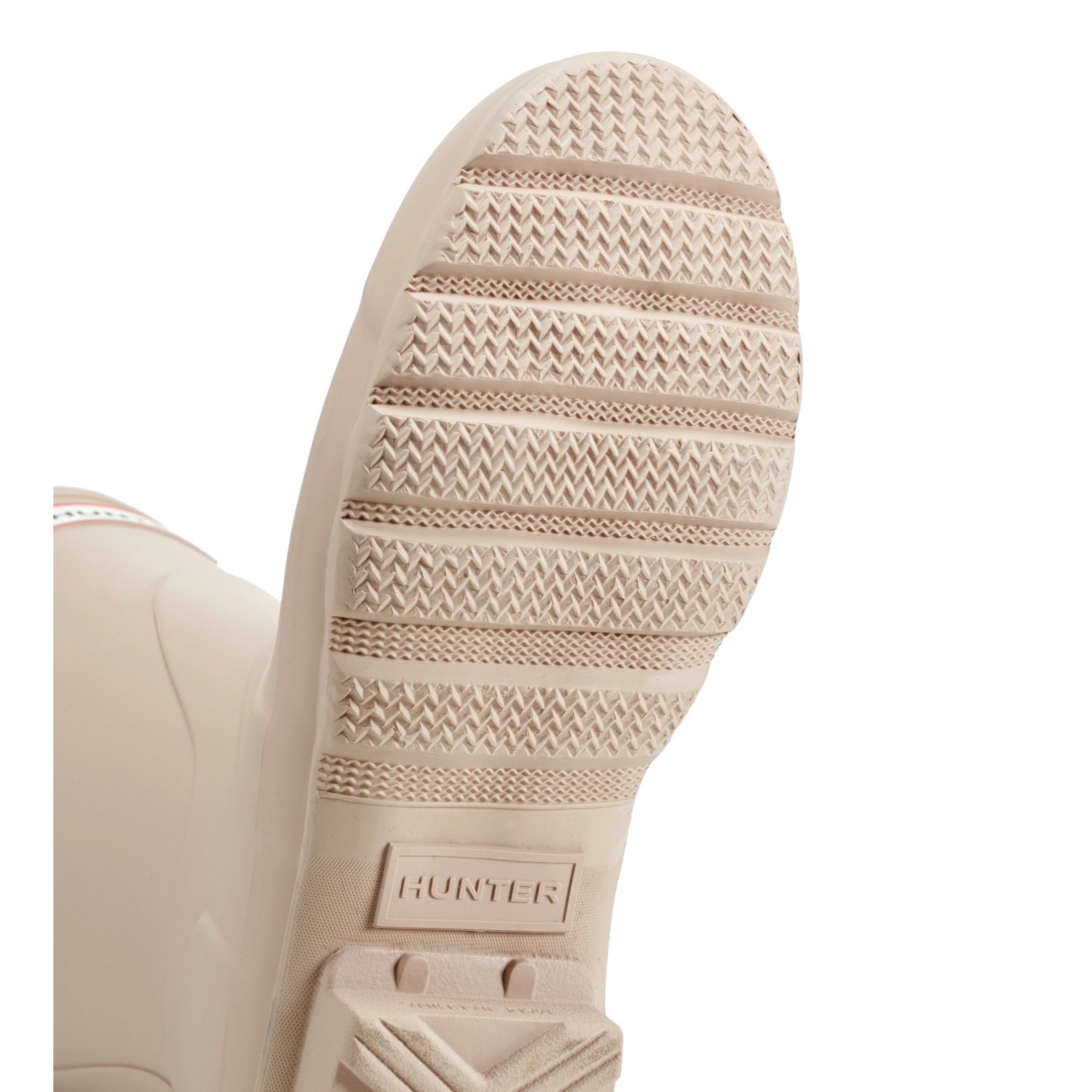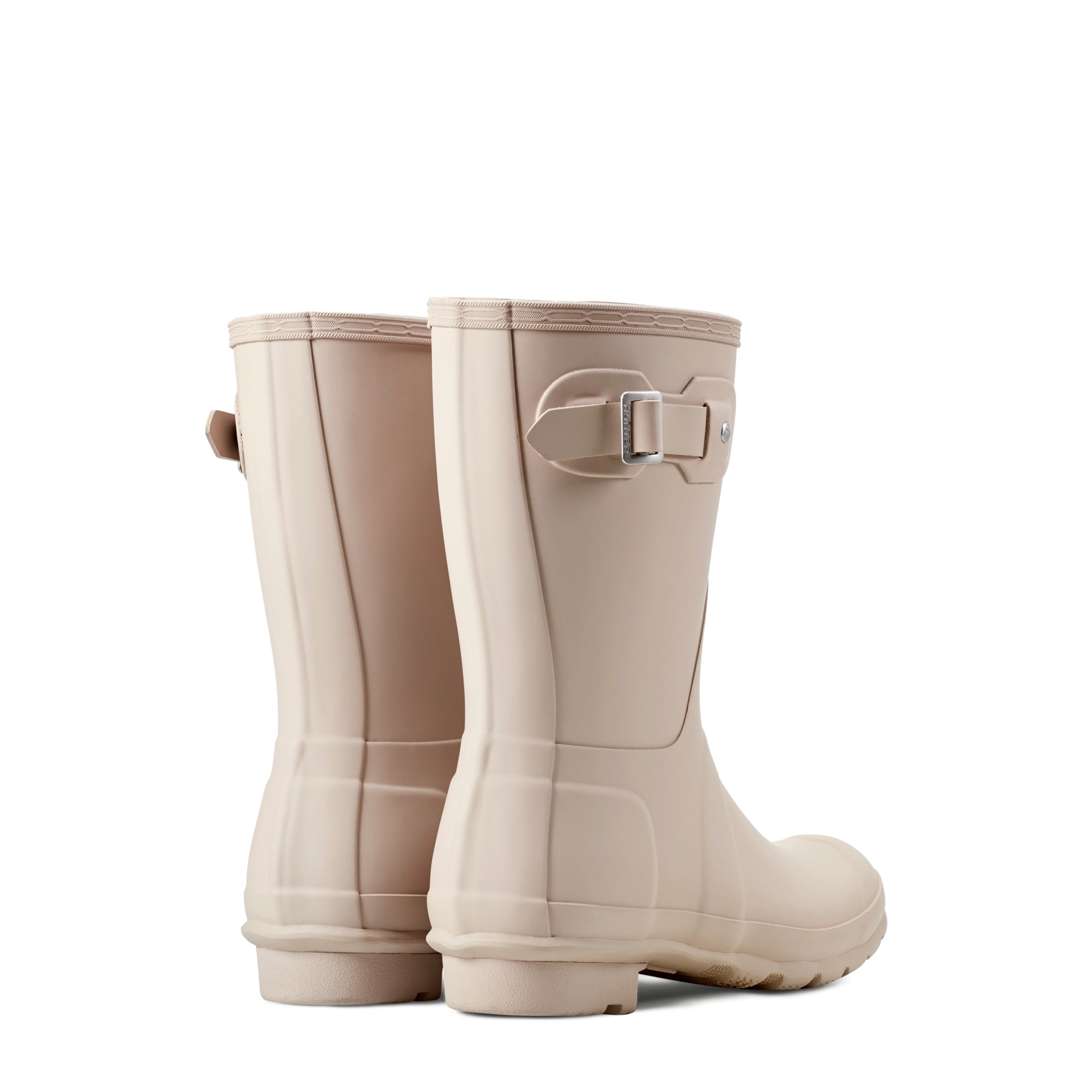 The Women's Original Short Rain Boot is a shorter version of the iconic Hunter Original Tall Boot and perfect for wet-weather conditions. Formed of natural rubber, each boot is handcrafted and assembled over three days before being vulcanised for superior protection. The Hunter Original tread pattern and comfortable 100% recycled polyester lining completes the design on this 100% waterproof boot.