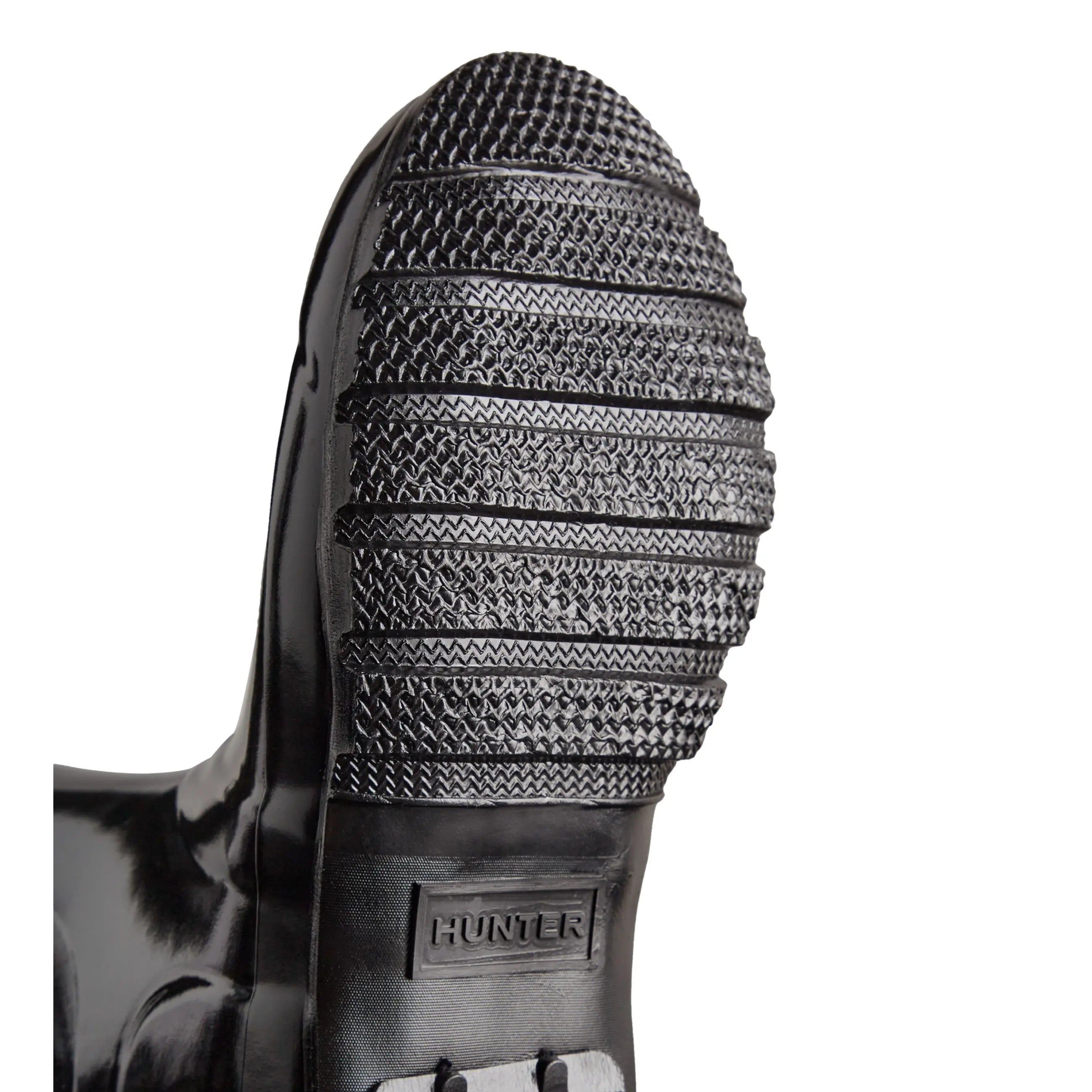 First introduced in 1956, the Original Tall Gloss Boot lies at the heart of the Hunter brand. Formed of natural rubber, each pair is handcrafted from 28 parts and assembled over three days on an aluminium last bespoke to Hunter. It is then vulcanised for superior protection before having the high gloss finish applied. The Hunter Original tread pattern and comfortable 100% recycled polyester lining completes the design. This boot is 100% waterproof.