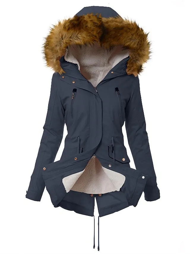 Gender:Women's,Outerwear Type:Parka,Occasion:Weekend,Outdoor,Going out,Street,Daily Wear,Season:Winter,Fall,Function:Windproof,Comfortable,Warm,Fabric:Polyester,Placket:Zipper,Style:Street Style,Modern,Fashion,Casual,Print Type:non-printing,Pattern:Solid Color,Design:Fur Collar,Drawstring,Pocket,Zipper,Neckline:Hoodie,Sleeve Length:Long Sleeve,Fit Type:Regular Fit,Elasticity:Micro-elastic,Look After Me:Machine wash,