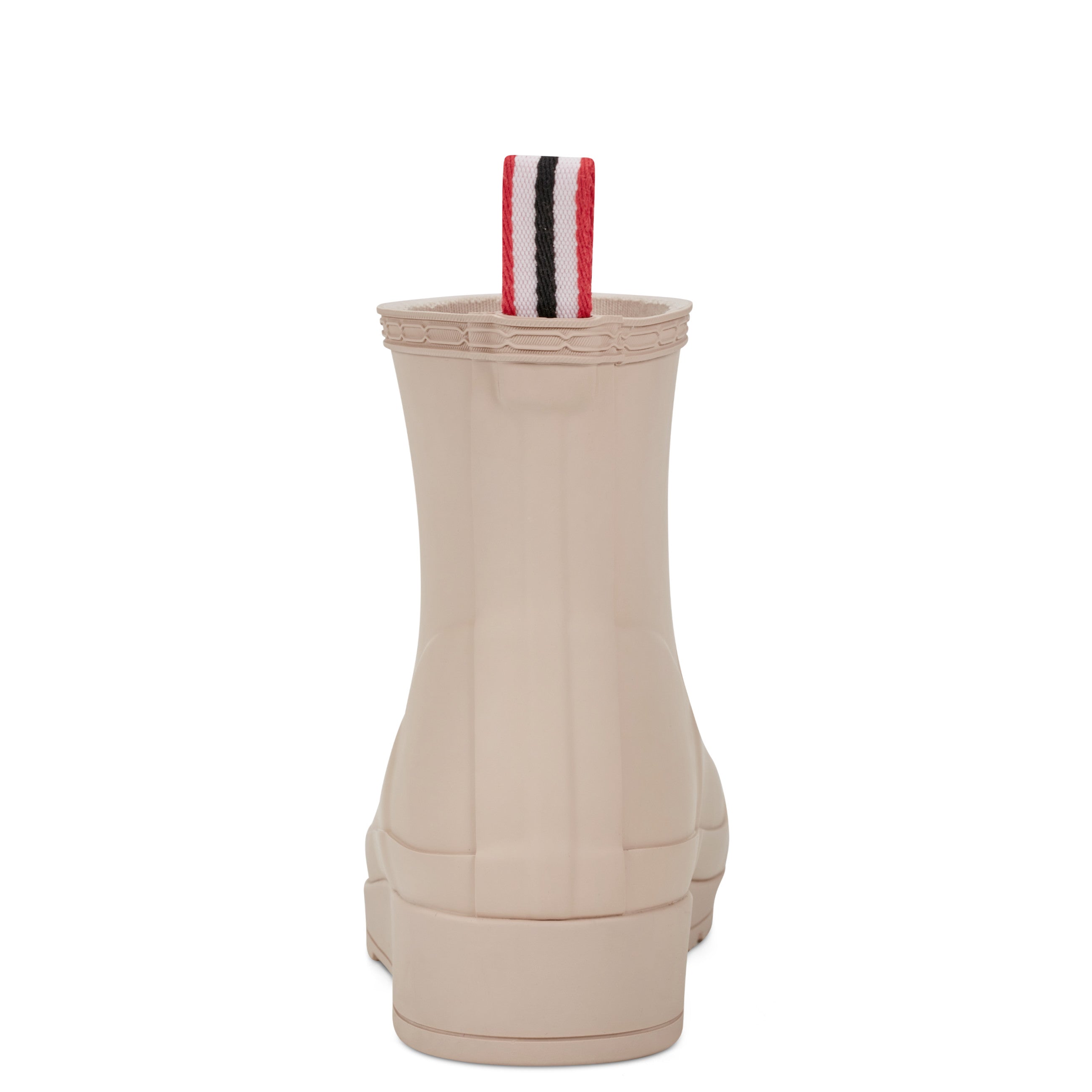 The Play Boot blends playfulness and practicality. A simplifying of the iconic design of the Original Boot, the Play Boot fast became a best-selling Hunter silhouette. Just grazing the top of the ankle, with a flatter platform sole for comfort, finished with a pull tab for easy foot entry. The design is crafted from the highest quality natural rubber, 100% recycled polyester lining and is 100% waterproof.