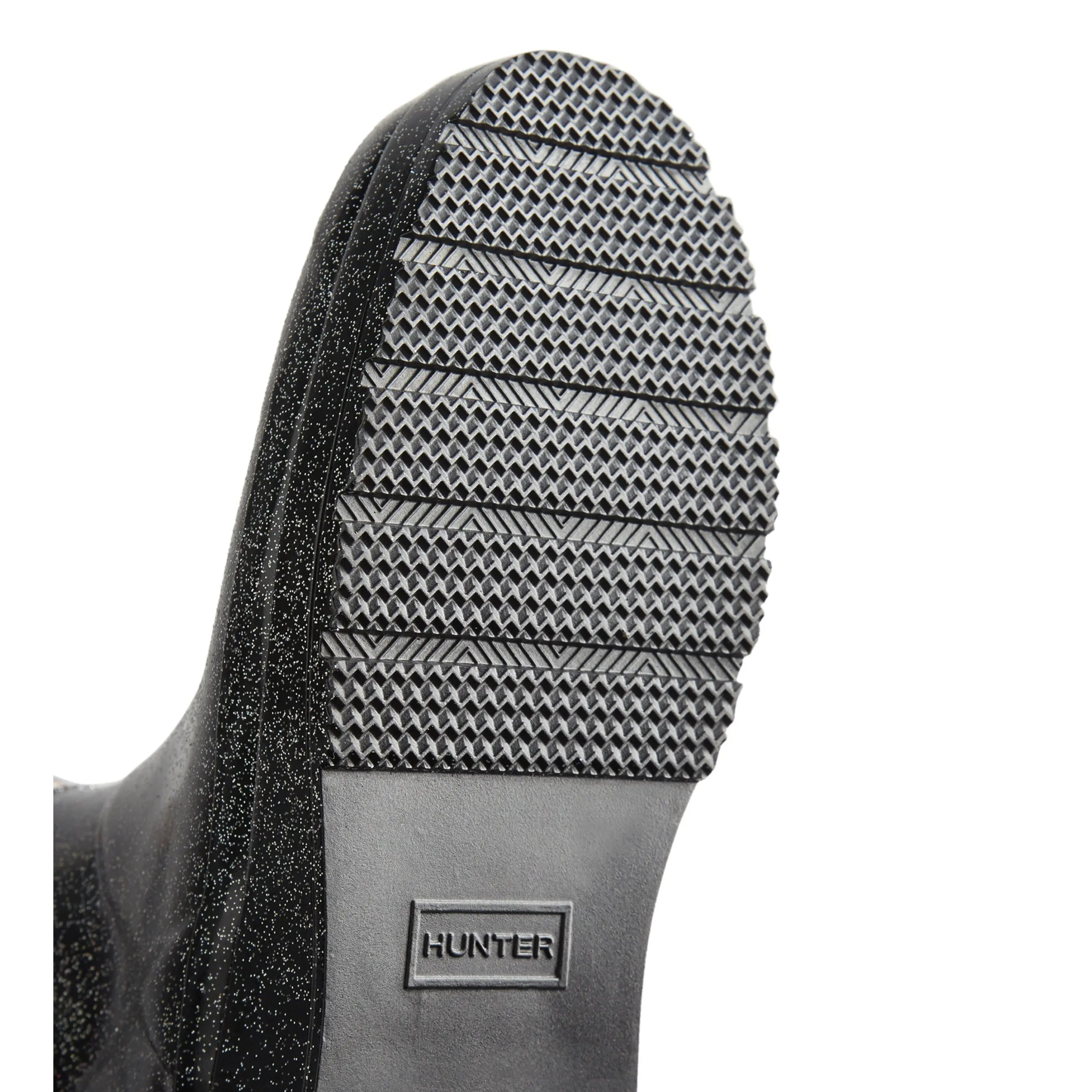 The Hunter Starcloud features a shimmering glitter finish as it moves in the light. The Play Boot blends playfulness and practicality. A simplifying of the iconic design of the Original Boot, the Play Boot fast became a best-selling Hunter silhouette. Just grazing the top of the ankle, with a flatter platform sole for comfort, finished with a pull tab for easy foot entry. The design is crafted from the highest quality natural rubber, 100% recycled polyester lining and is 100% waterproof.