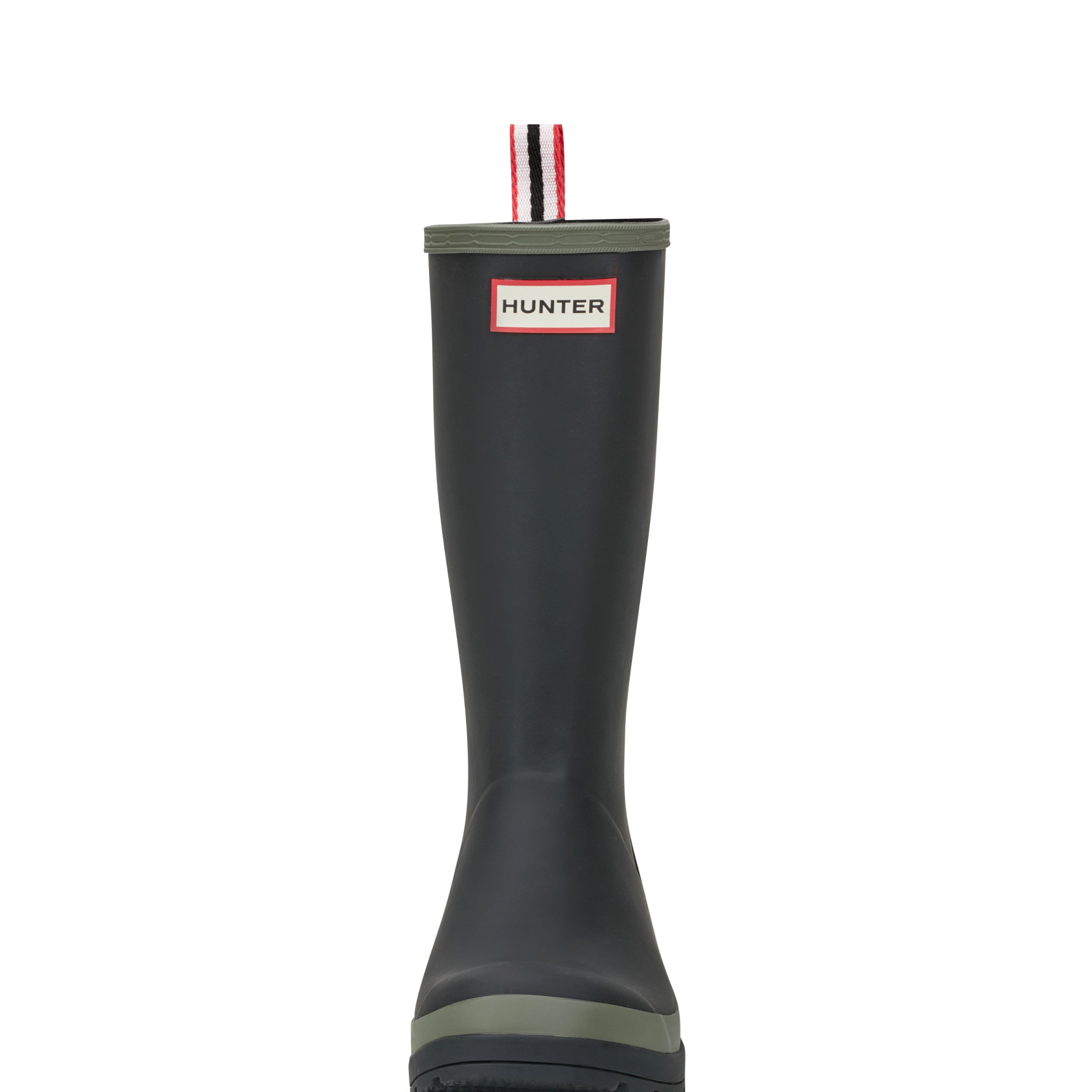 The Play Boot Tall blends playfulness and practicality. A simplifying of the iconic design of the Original Boot, the Play Boot fast became a best-selling Hunter silhouette. The boot is at a mid-calf height, with a flatter platform sole for comfort, finished with a pull tab for easy foot entry. The design is crafted from the highest quality natural rubber, 100% recycled polyester lining and is 100% waterproof.