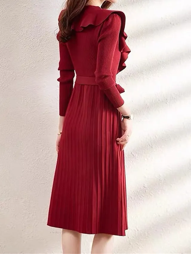 Gender:Women's,Style:Daily,Fashion,Knitwear,Casual,Occasion:Outdoor,Going out,Christmas,Daily,Dresses Type:Casual Dress,Knit Dress,Sweater Dress,Red Christmas Dress,Jumper Dress,Christmas Sweater Dress,Christmas Dress,Winter Dress,Neckline:V Neck,Fabric:Knit,Design:Tie Front,Button,Ruffle,Ruched,Lace up,Sleeve Length:Long Sleeve,Elasticity:Micro-elastic,Look After Me:Hand wash,Pattern:Pure Color,Season:Winter,Fall,Fit US Size:S:12;M:14;L:16-18;XL:18-20,Fit UK Size:S:14;M:16;L:18;XL:18-20,Fit EU Size:S:42;M:44;L:46-48;XL:48-50,Bust (cm):S:95;M:100;L:105;XL:110,Length (cm):S:105;M:106;L:107;XL:108,2023 Trends:2023,Fit Type:Loose Fit,Dress Length Type:Midi Dress,Front page:FF,Production mode:External procurement,Listing Date:10/07/2023,