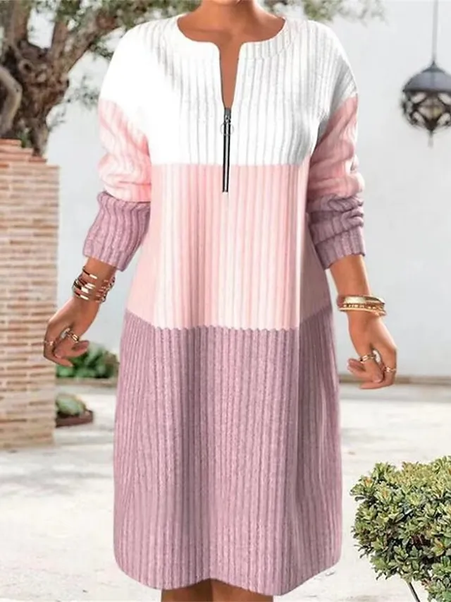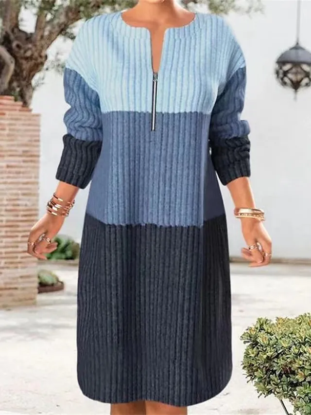 Gender:Women's,Style:Streetwear,Fashion,Knitwear,Occasion:Weekend,Outdoor,Daily,Street,Vacation,Dresses Type:Sweater Dress,Sheath Dress,Jumper Dress,Spring Dress,Winter Dress,Print Dress,Neckline:V Neck,Fabric:Cotton,Design:Print,Zipper,Sleeve Length:Long Sleeve,Elasticity:Micro-elastic,Look After Me:Machine wash,Pattern:Color Block,Season:Winter,Fall,Spring,Fit US Size:M:16-18;L:18;XL:20;XXL:22;3XL:22-24;4XL:24;5XL:26,Fit UK Size:M:18;L:18-20;XL:20;XXL:22-24;3XL:24;4XL:26;5XL:28,Fit EU Size:M:46-48;L:48;XL:50;XXL:52;3XL:52-54;4XL:54;5XL:56,Bust (cm):M:107;L:112;XL:117;XXL:122;3XL:127;4XL:132;5XL:137,Length (cm):M:100;L:102;XL:104;XXL:106;3XL:108;4XL:110;5XL:112,Fit Type:Loose Fit,2023 Trends:2023,Print Type:Print,Dress Length Type:Midi Dress,Front page:FF,Listing Date:08/15/2023,