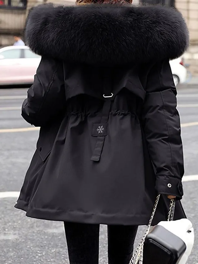 Gender:Women's,Outerwear Type:Winter Jacket,Hoodie Jacket,Parka,Winter Coat,Occasion:Going out,SchoolWear,Daily,Holiday,Street,Dailywear,Daily Wear,School,Outdoor,Casual Daily,Season:Winter,Fall,Function:Breathable,Warm,Fabric:Polyester,Placket:Single Breasted,Zipper,Style:Comfortable,Casual Daily,Simple,Outerwear Length:Regular,Pattern:Pure Color,Solid Color,Design:Fleece Lined,Fur Collar,Neckline:Hoodie,Sleeve Length:Long Sleeve,Fit Type:Regular Fit,Elasticity:Micro-elastic,Look After Me:Hand wash,Machine wash,