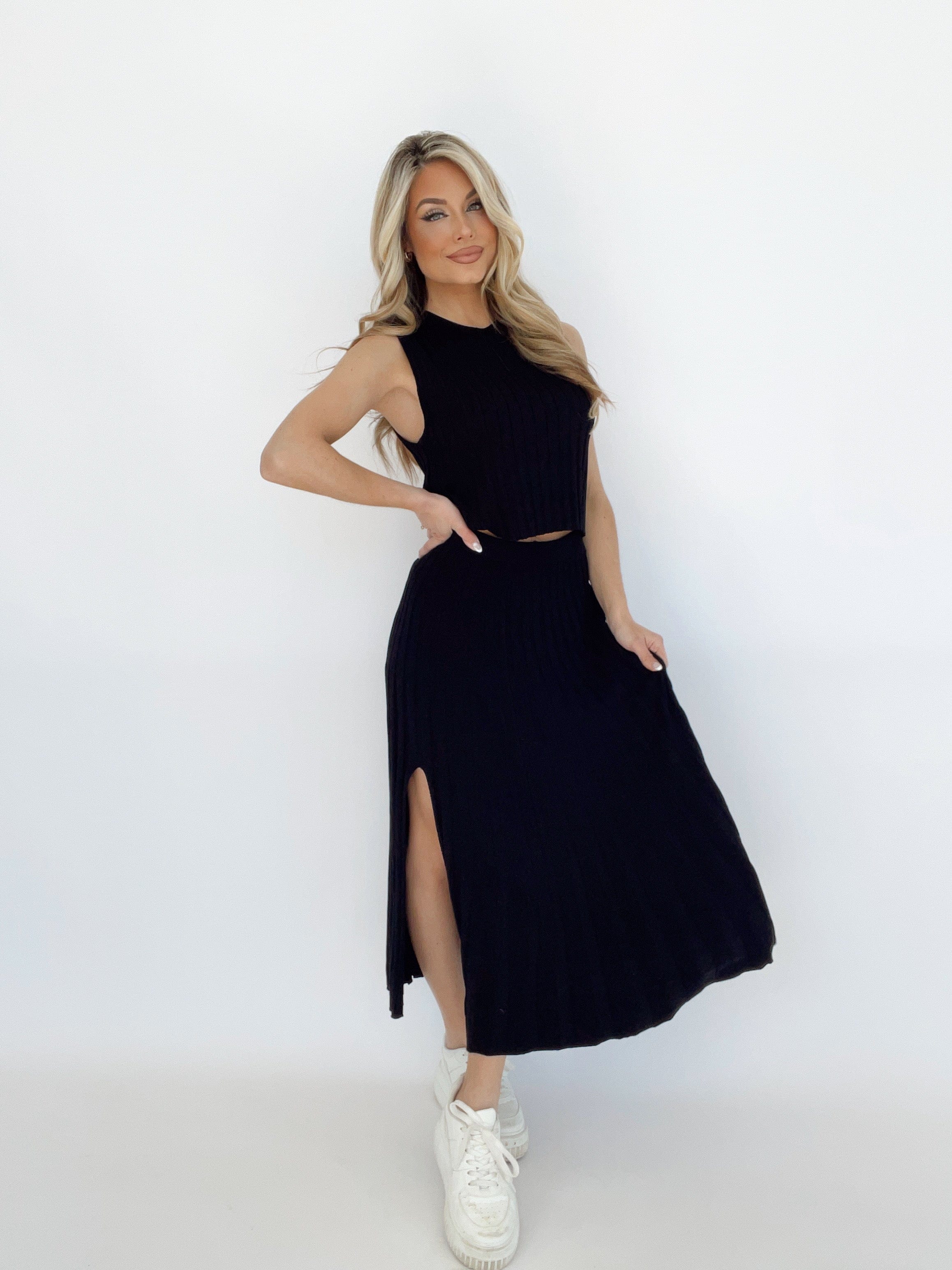 Indulge in the ultimate luxury with our Yacht Club Maxi Skirt. Crafted from soft, ribbed knit with ultra stretch, this chic and high waisted skirt features a stretchy elastic waistband for comfort and a flattering maxi fit. Perfect for a beach day, brunch date, or vacation, the side slit detail adds an elegant touch to this versatile and coastal neutral piece, perfect for spring.