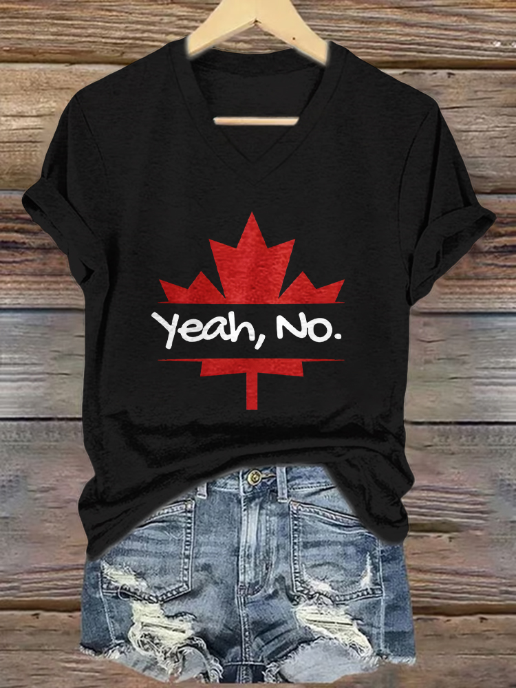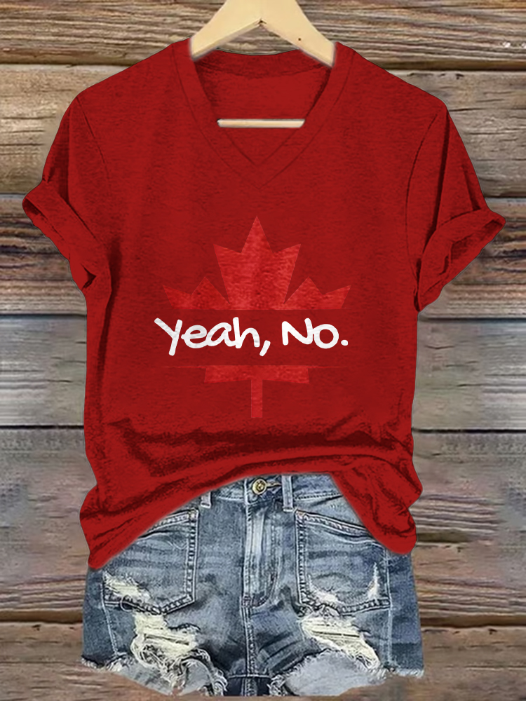 Yeah,No. Printed V-Neck Short-Sleeved T-Shirt