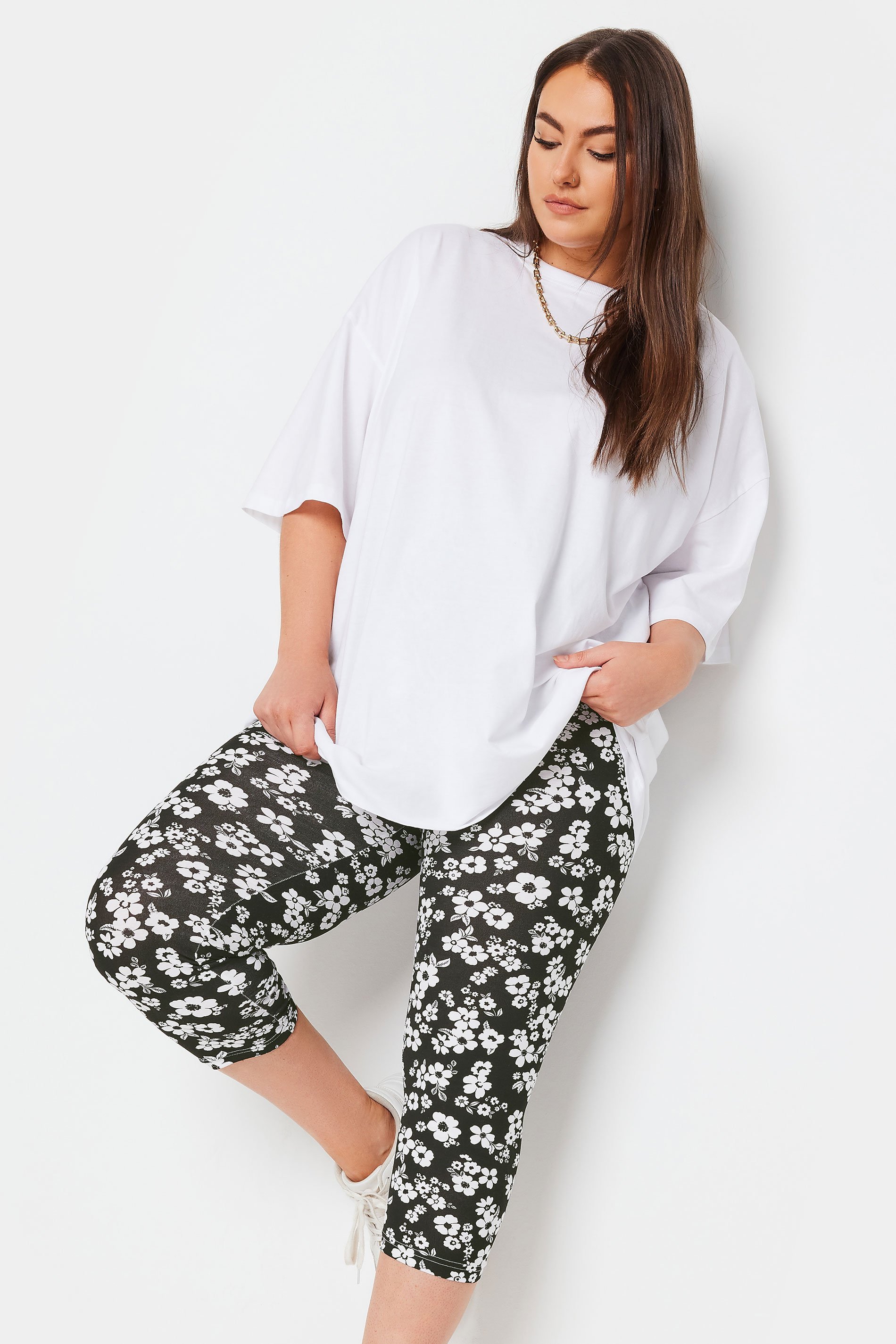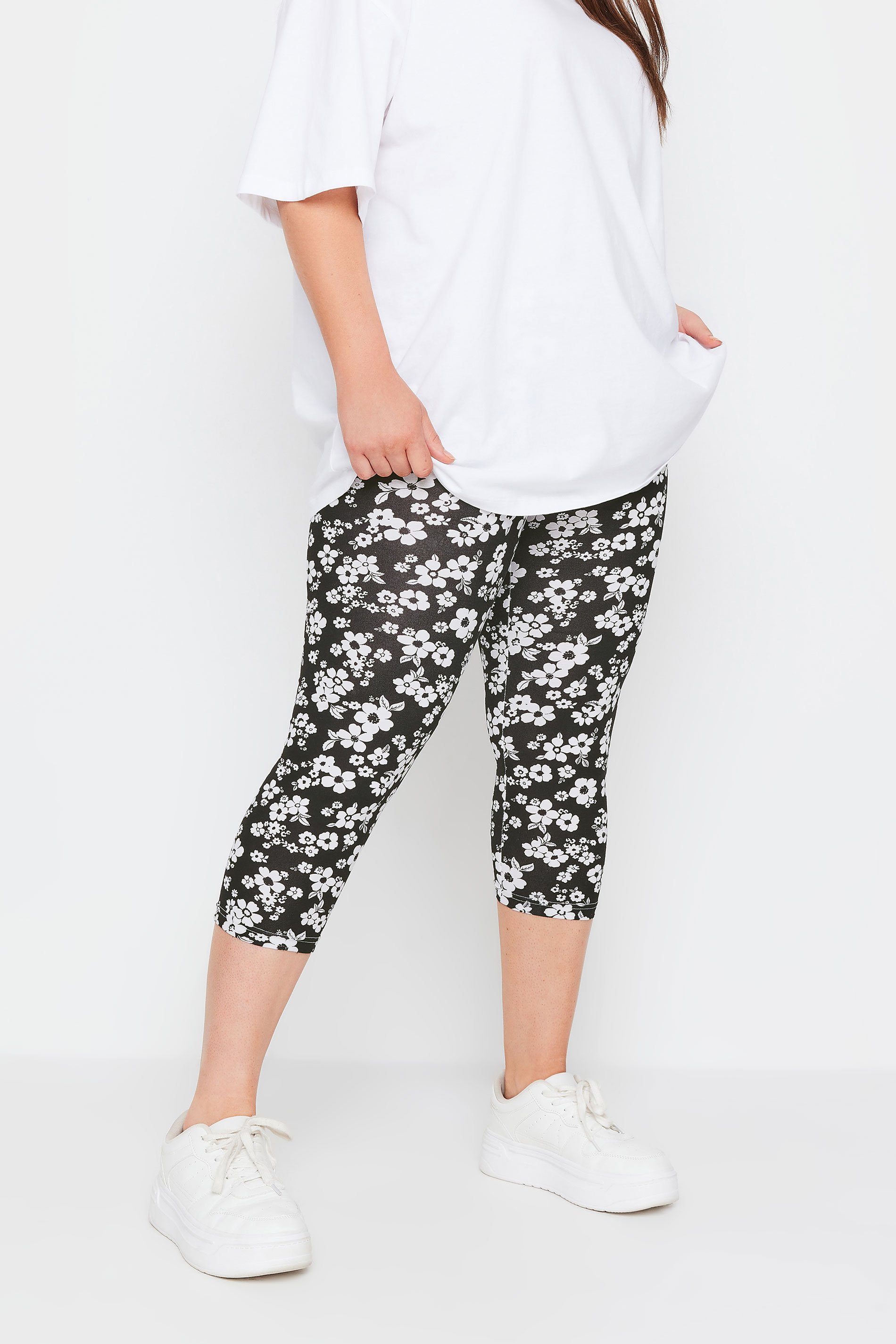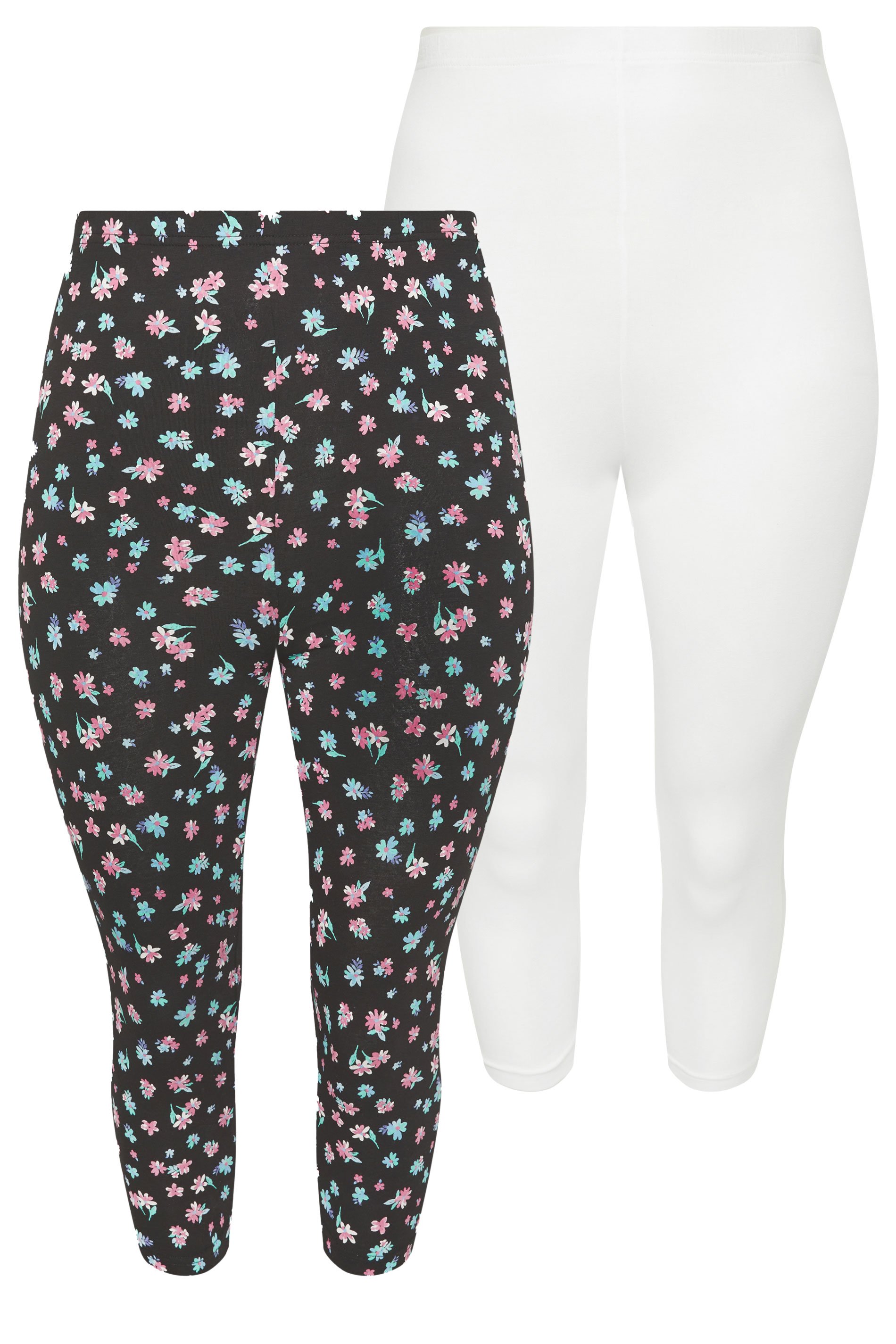 • YOURS Curve 2 PACK Black & White Ditsy Floral Print Cropped Leggings