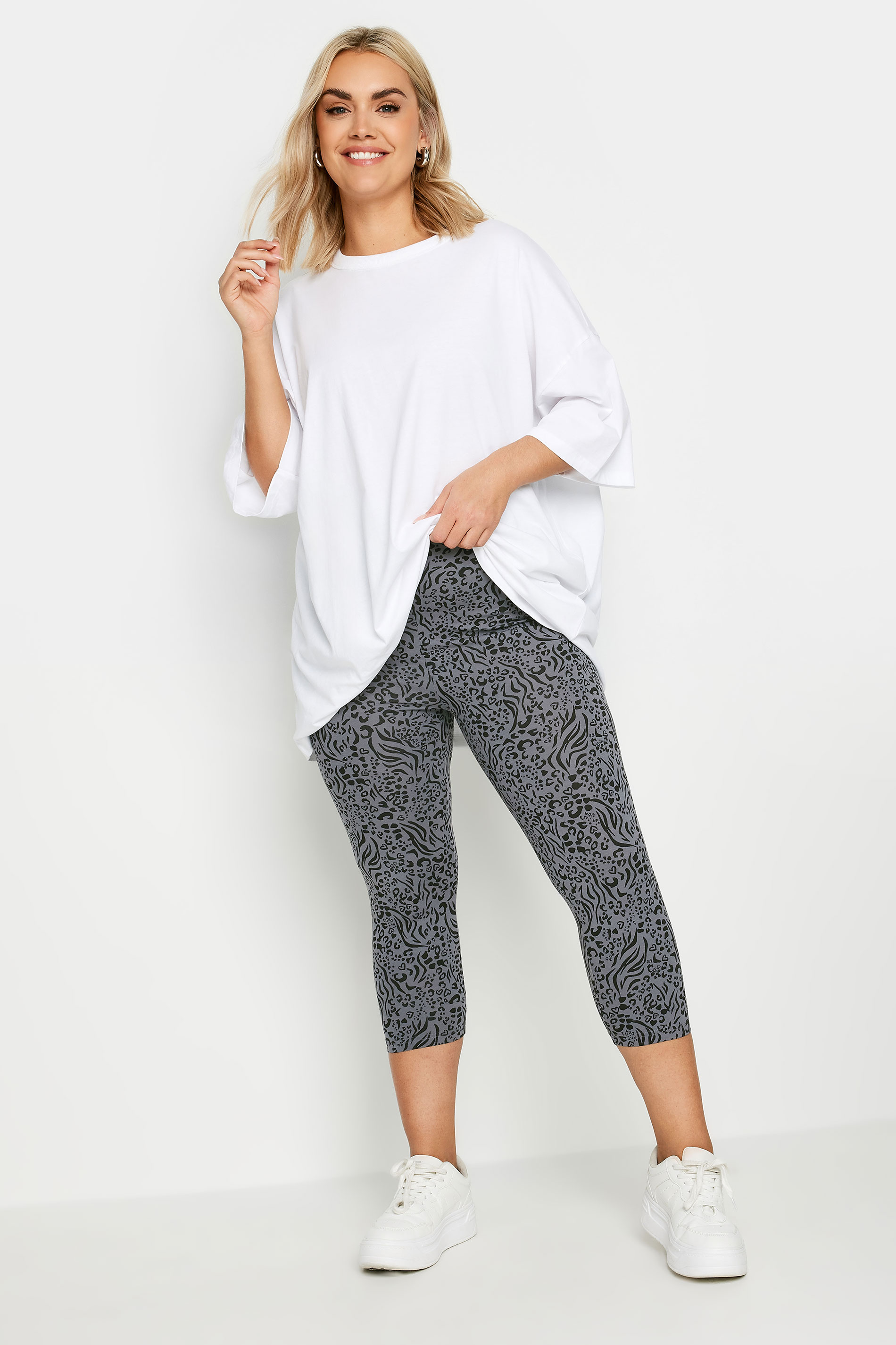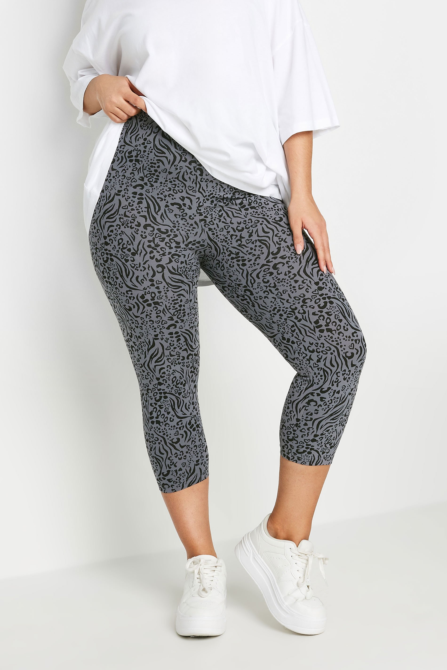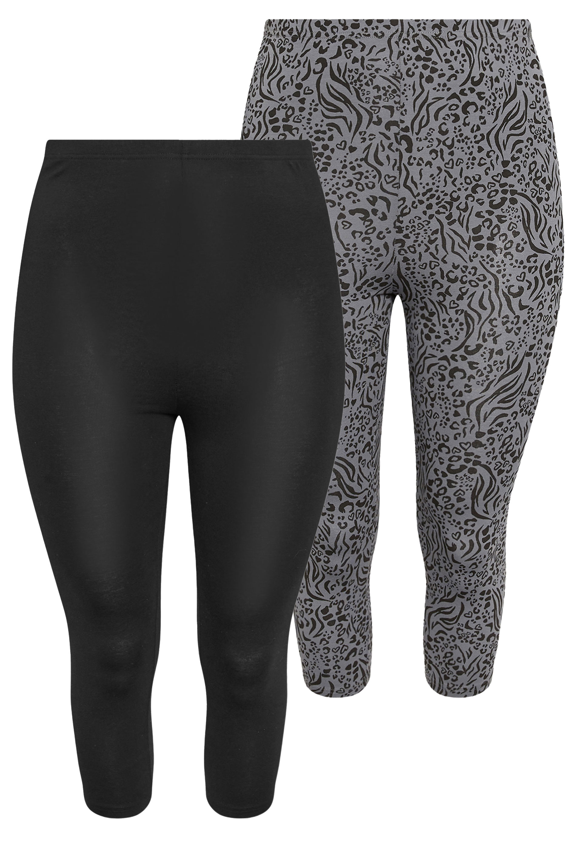 • YOURS Curve 2 PACK Grey Animal Print Cropped Leggings