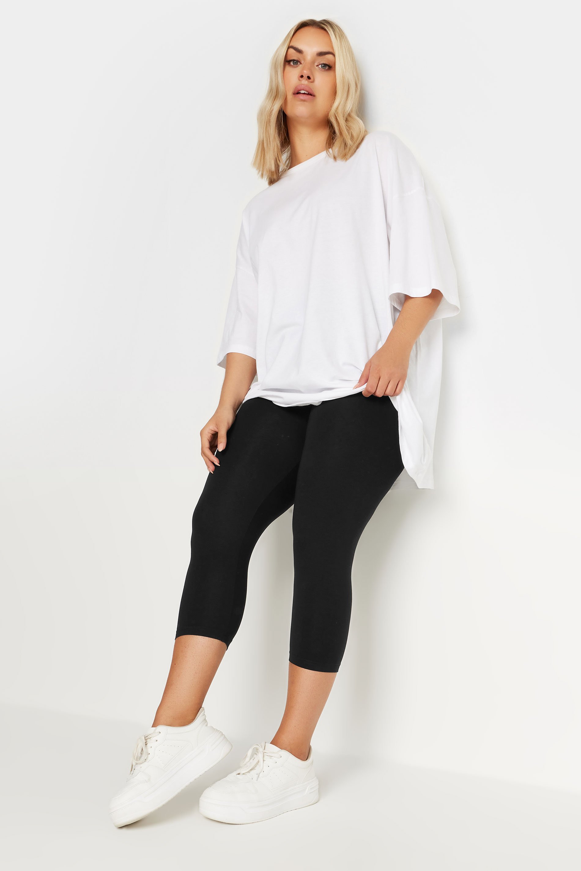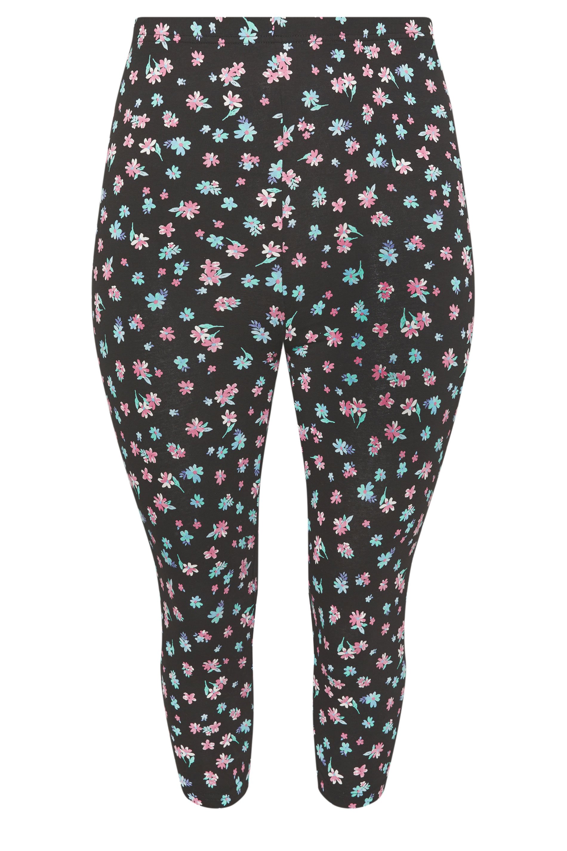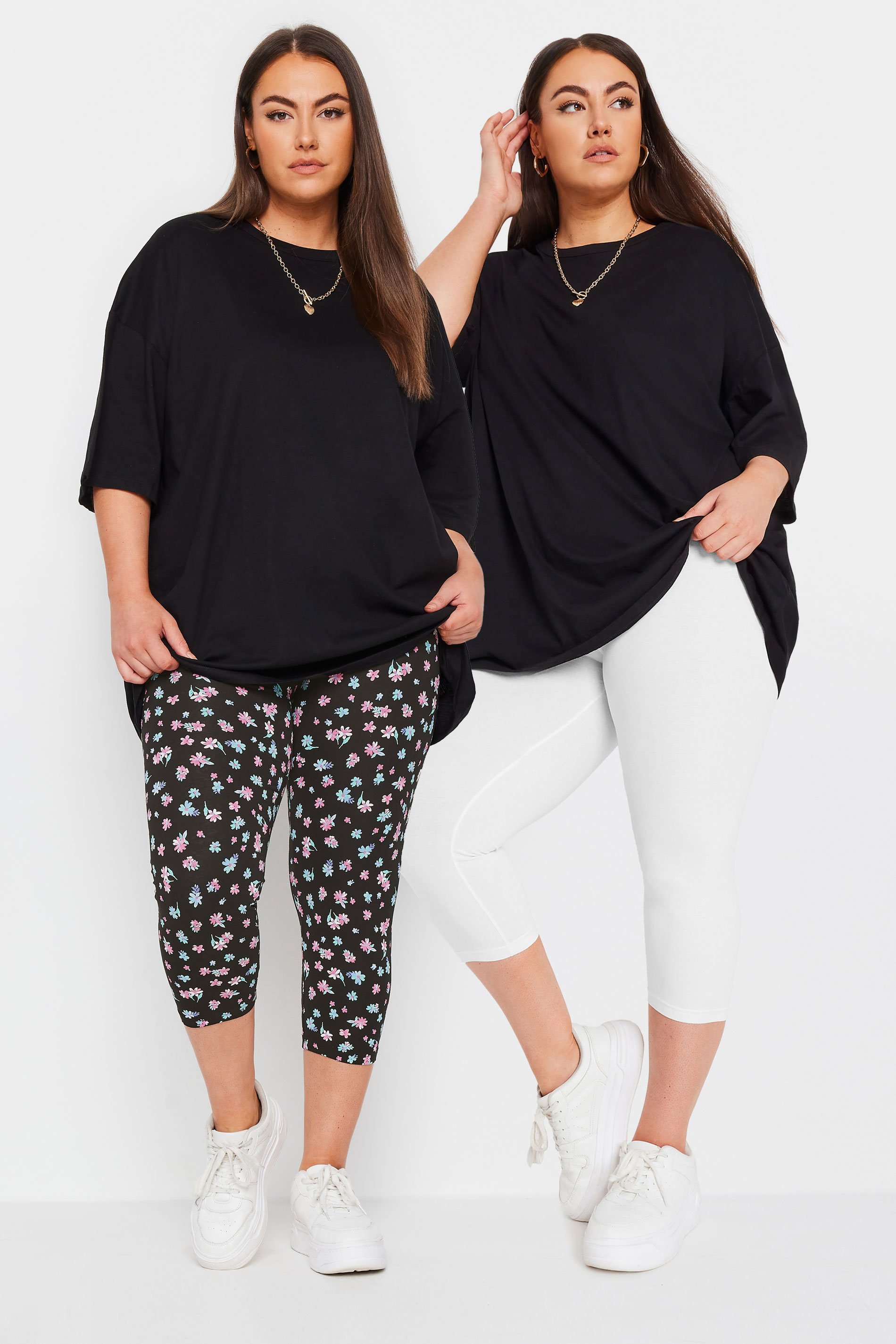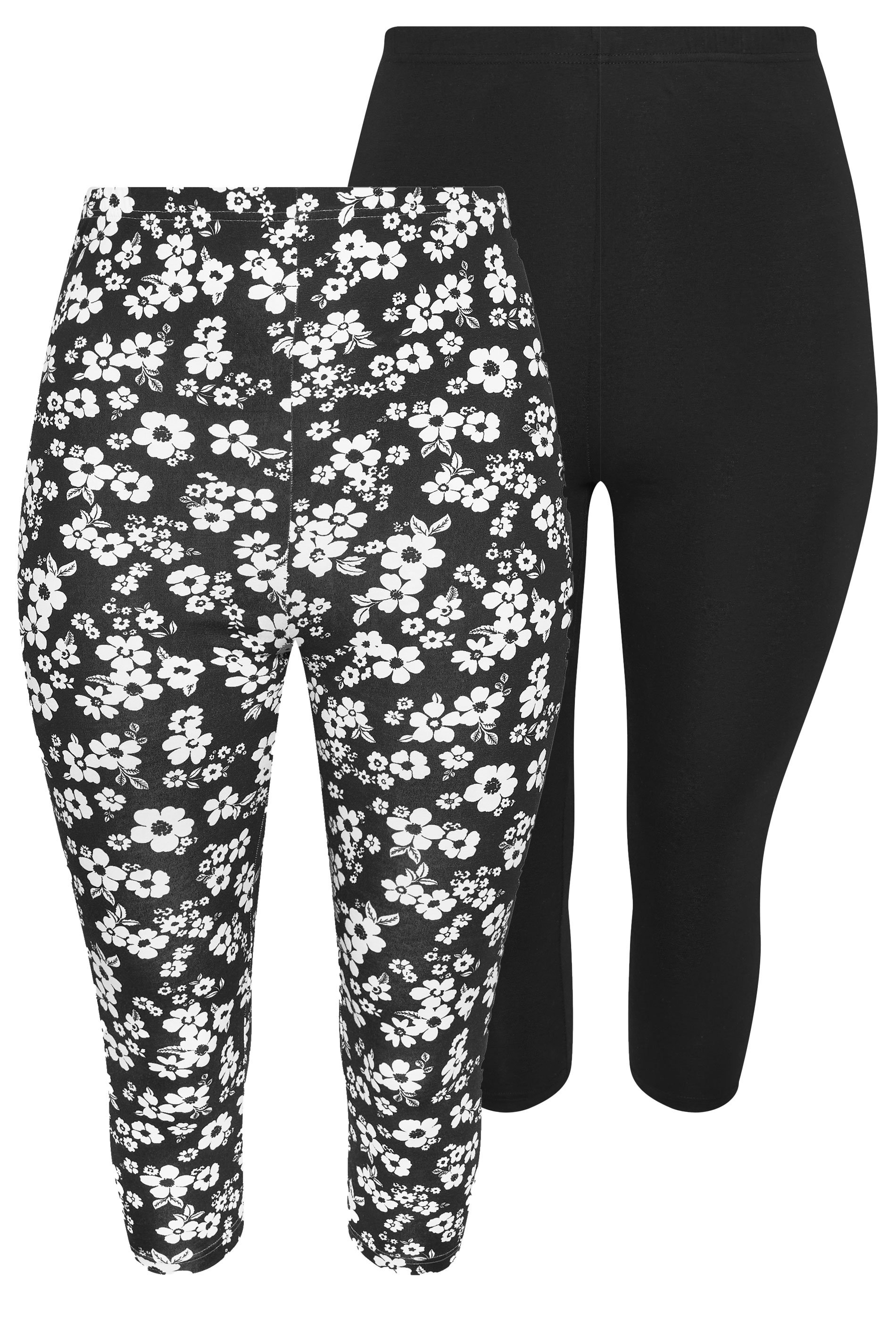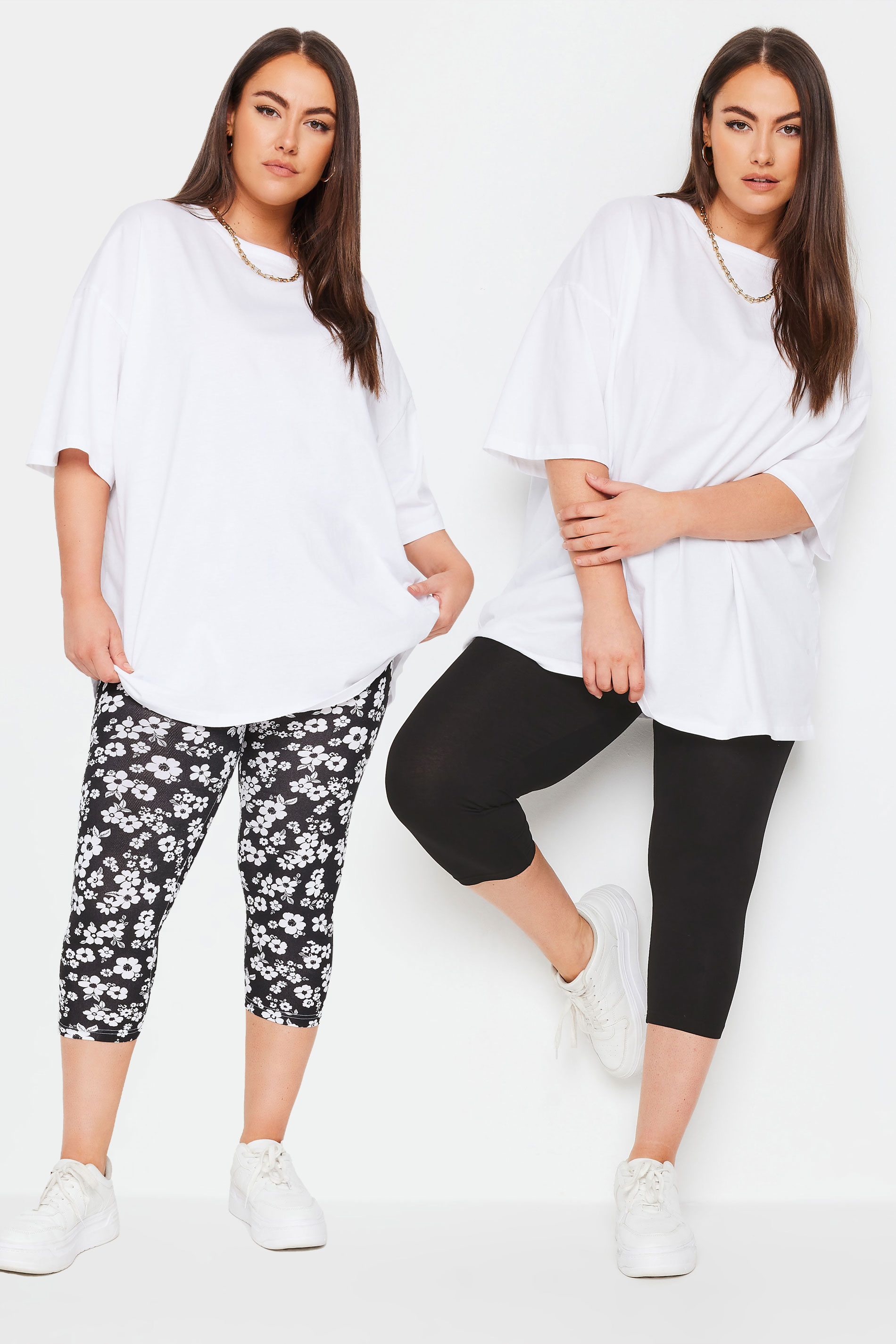 • YOURS Curve 2 PACK Black Floral Print Cropped Leggings