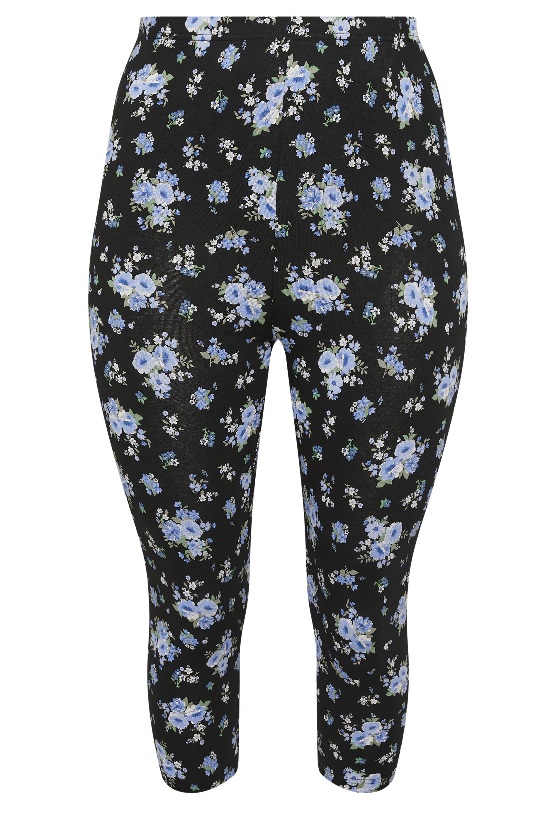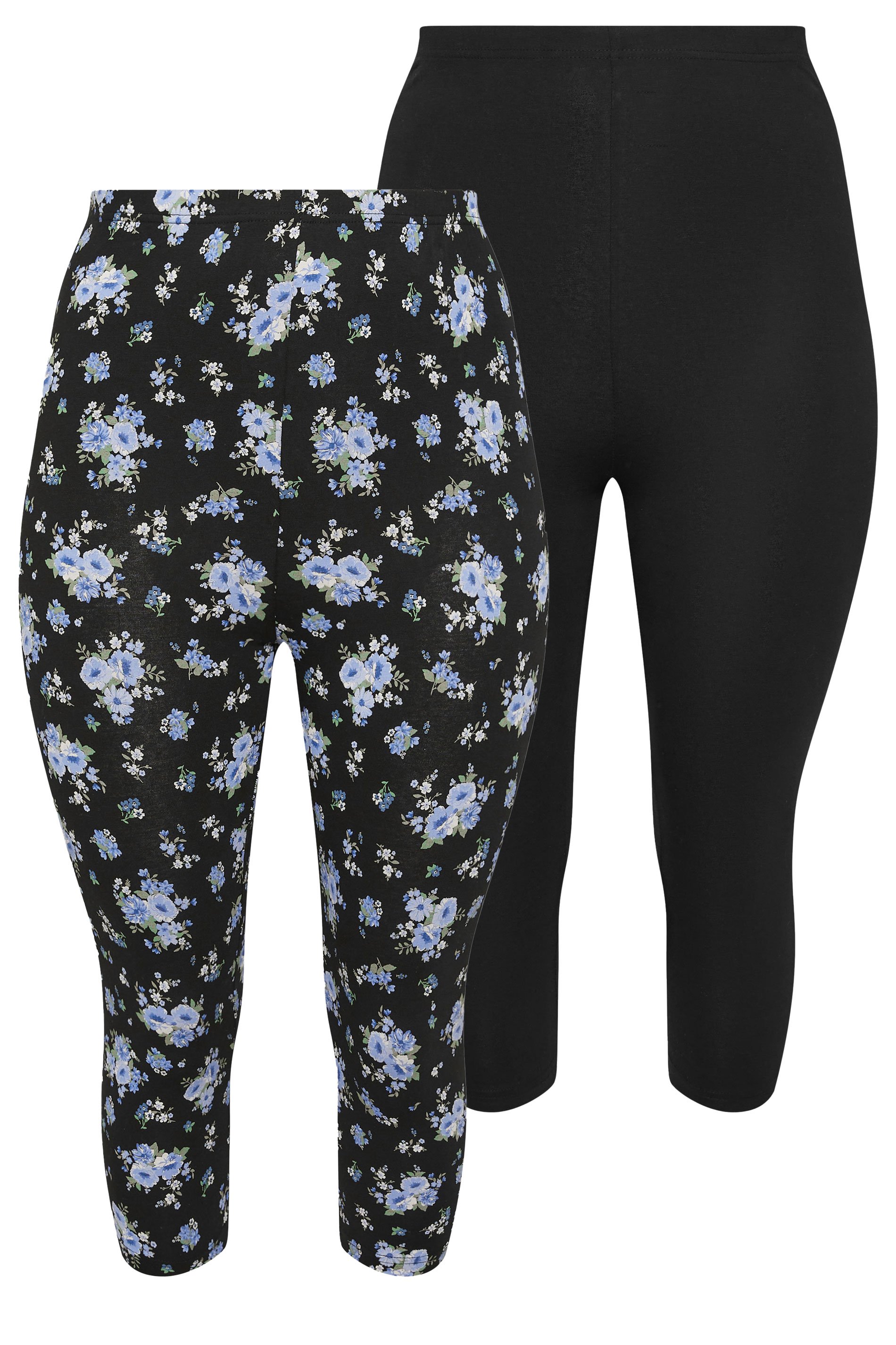 • YOURS Curve 2 PACK Black & Blue Floral Print Cropped Leggings