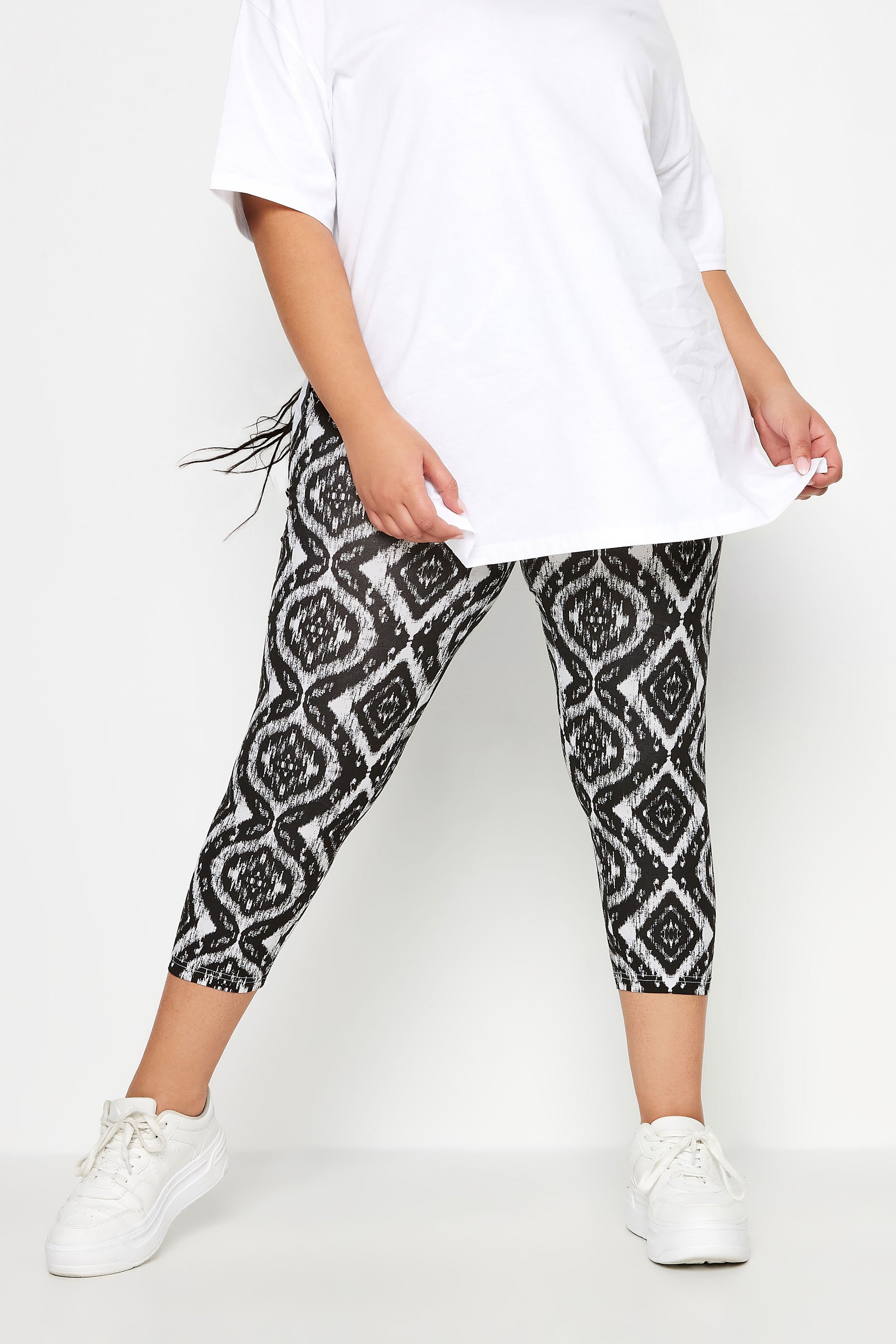 YOURS Curve 2 PACK Black Aztec Print Cropped Leggings 271532