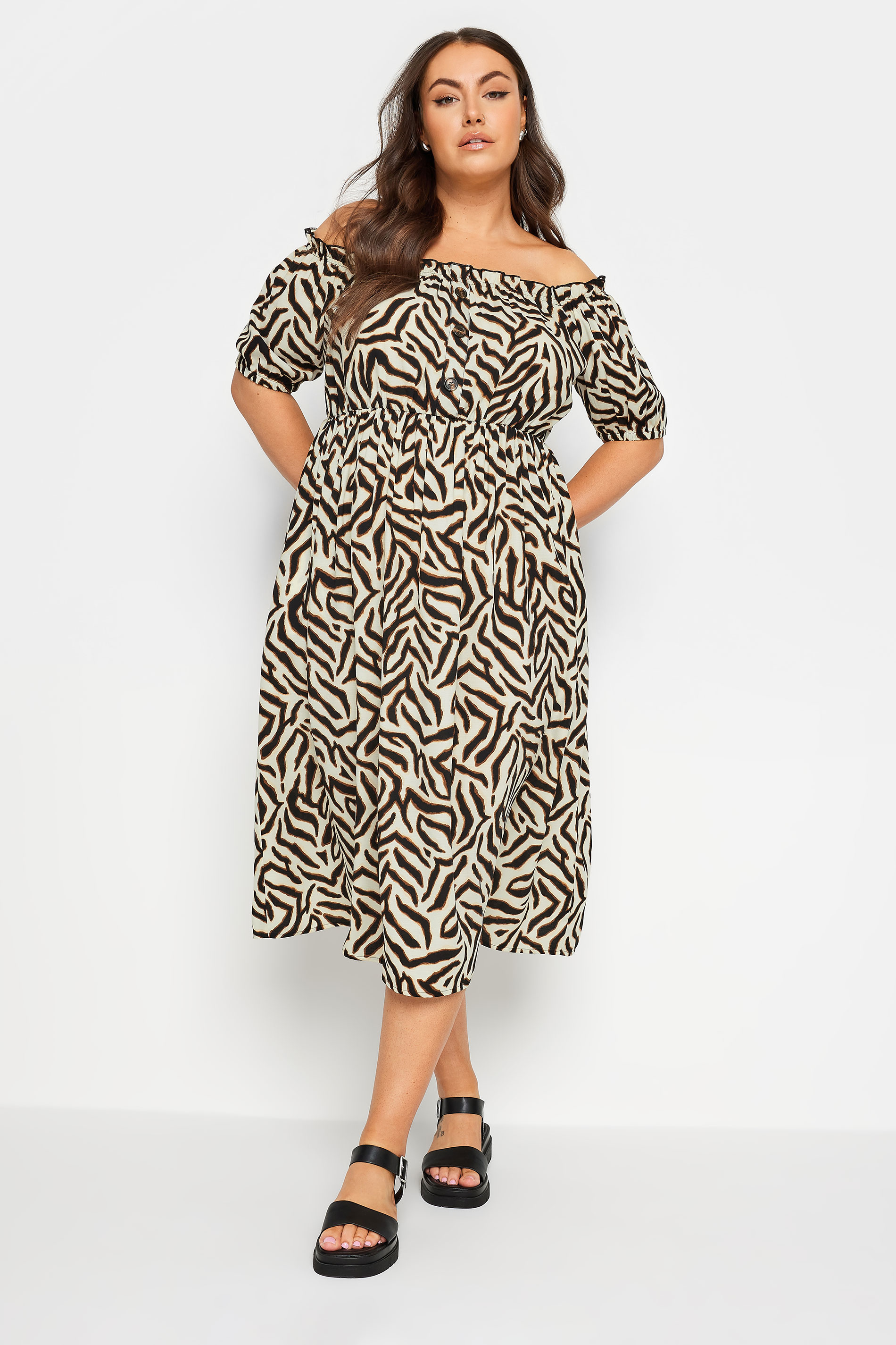 Looking to expand your dress collection this summer? Look no further than this new-in animal print midi dress. Made from a comfortable lightweight fabric, it features a bardot style, short sleeves and sits at a midi length. Pair with your favourite sandals for an effortless summertime look.