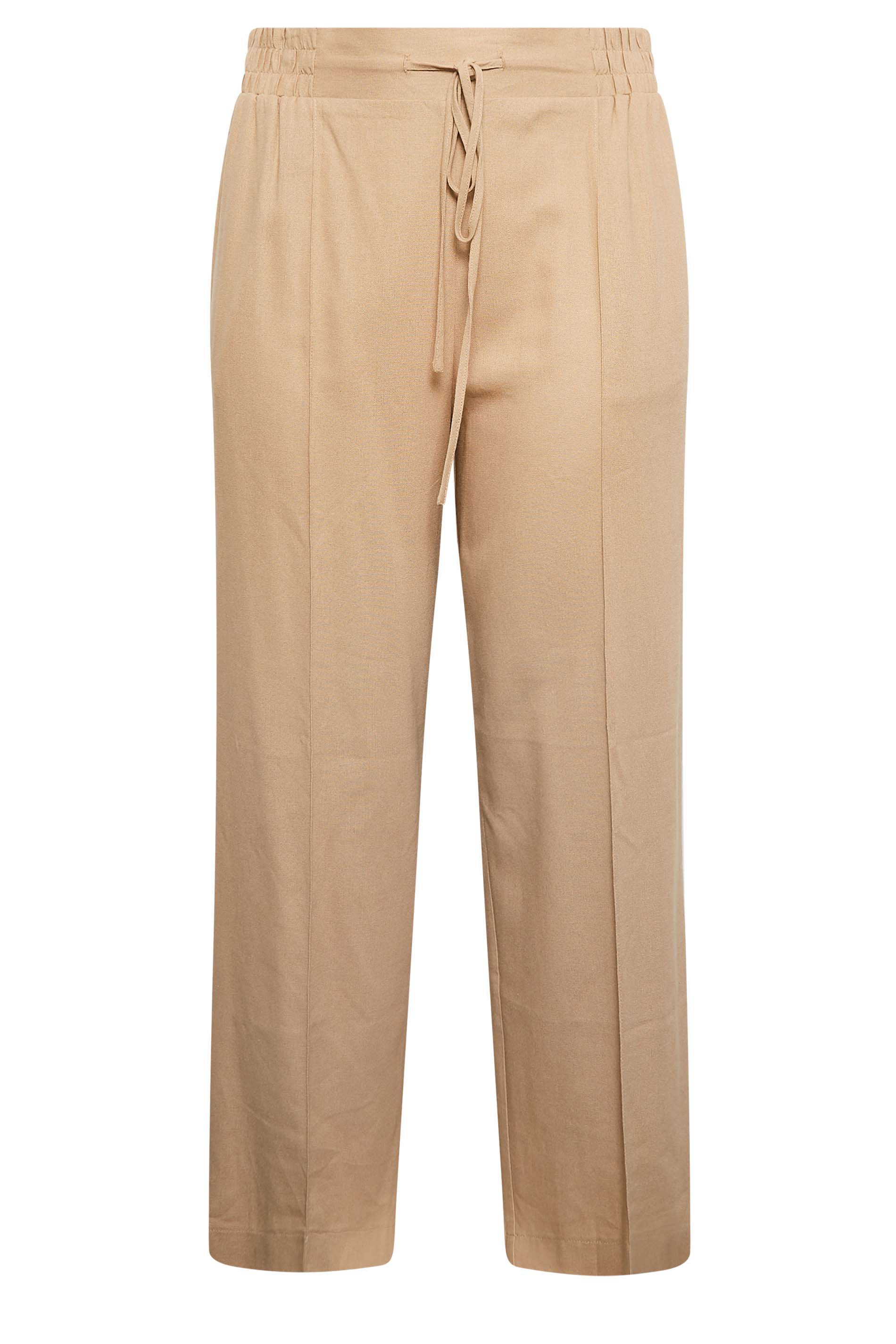 YOURS Curve Beige Brown Wide Leg Linen Trousers 263748