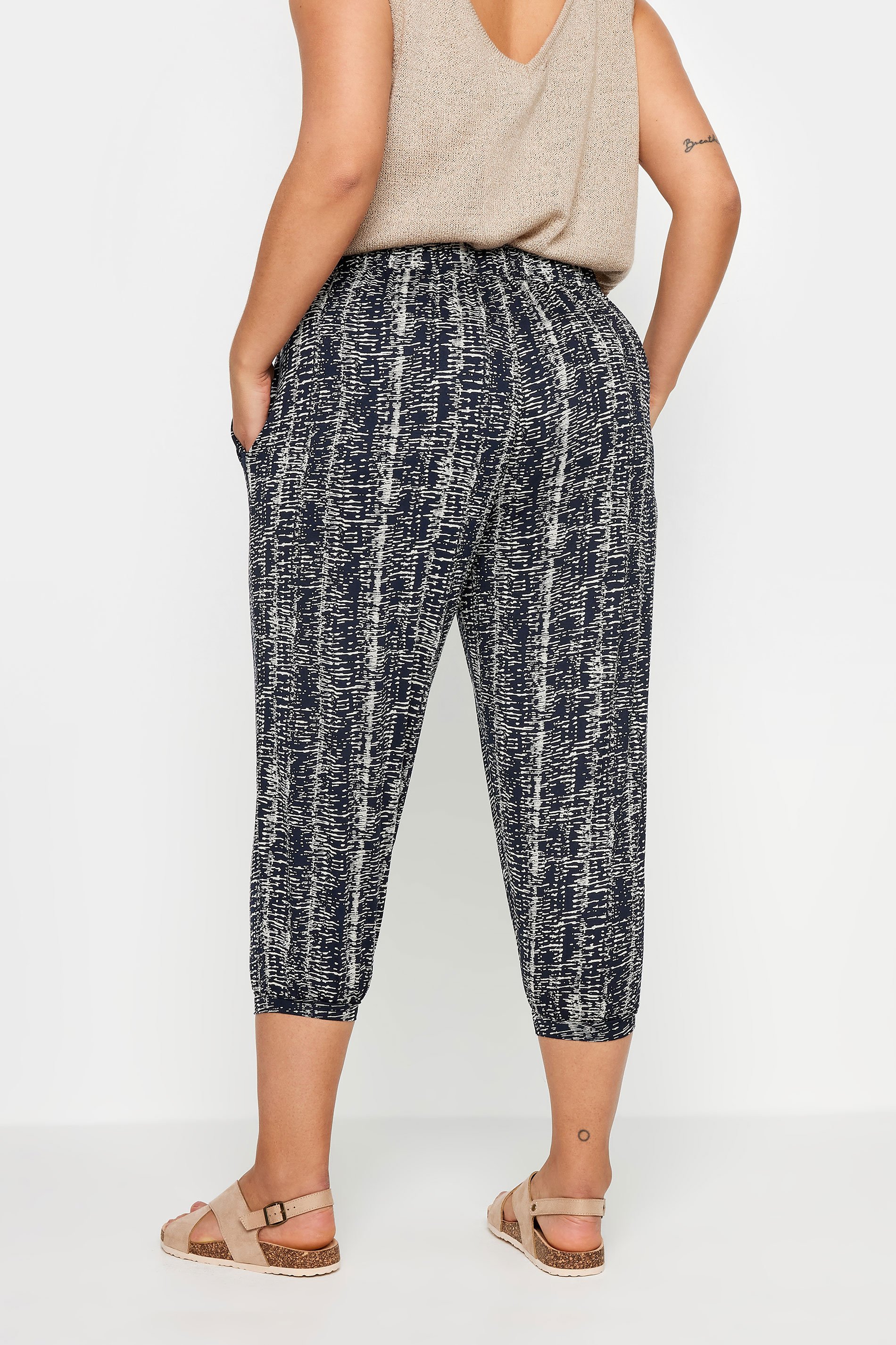 YOURS Curve Black Abstract Print Cropped Hareem Joggers