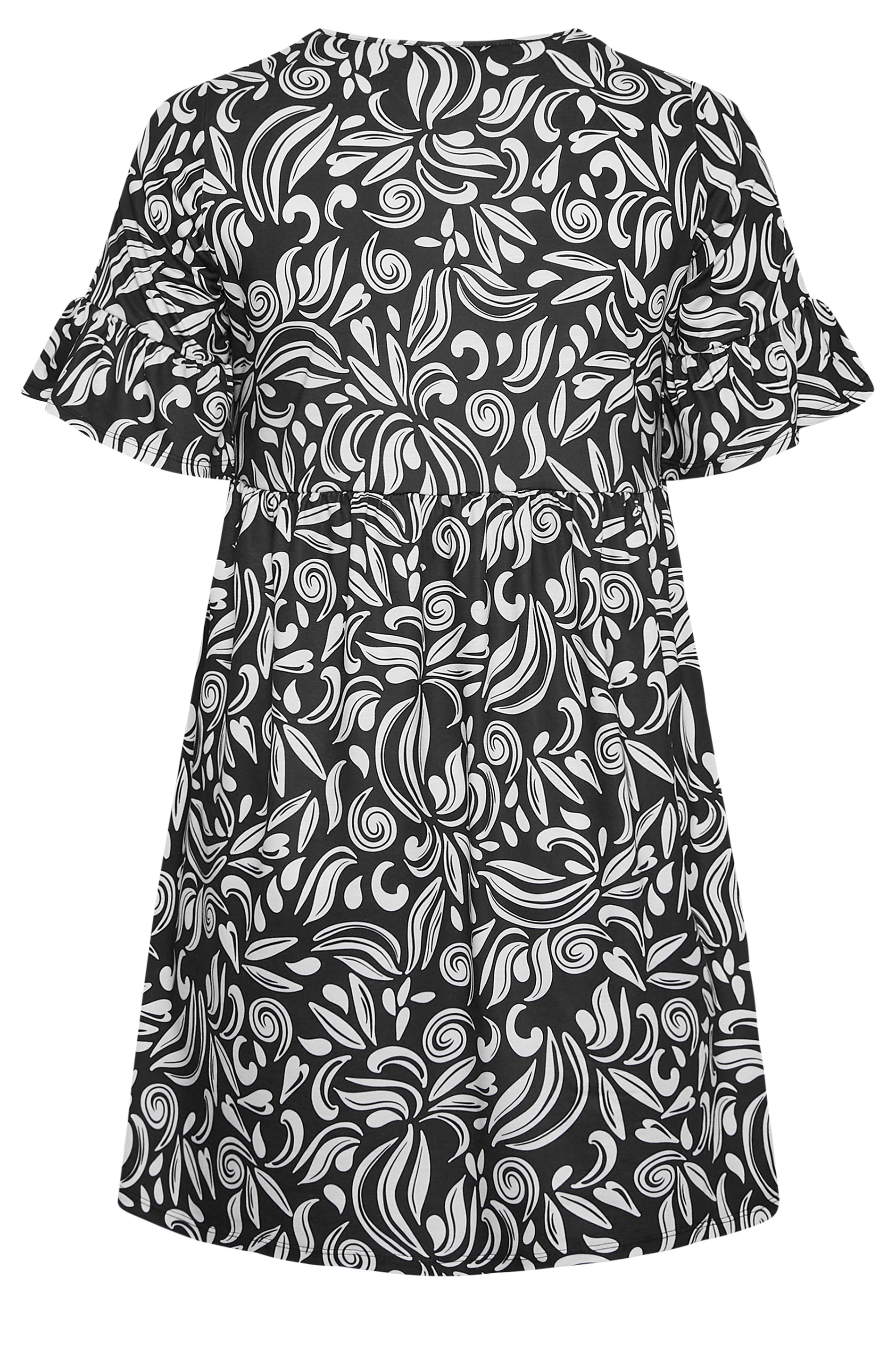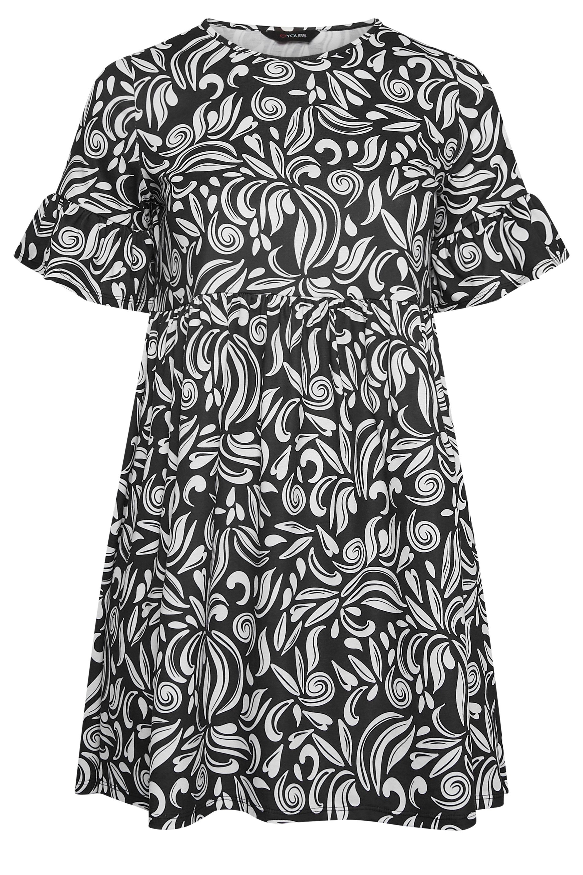 Add this new-in print to your Summer wardrobe. This smock dress made from a stretch jersey fabric features a scoop neckline, and frill short sleeves finished in a tunic style with an abstract print. Style with sandals and a denim jacket to complete the look.