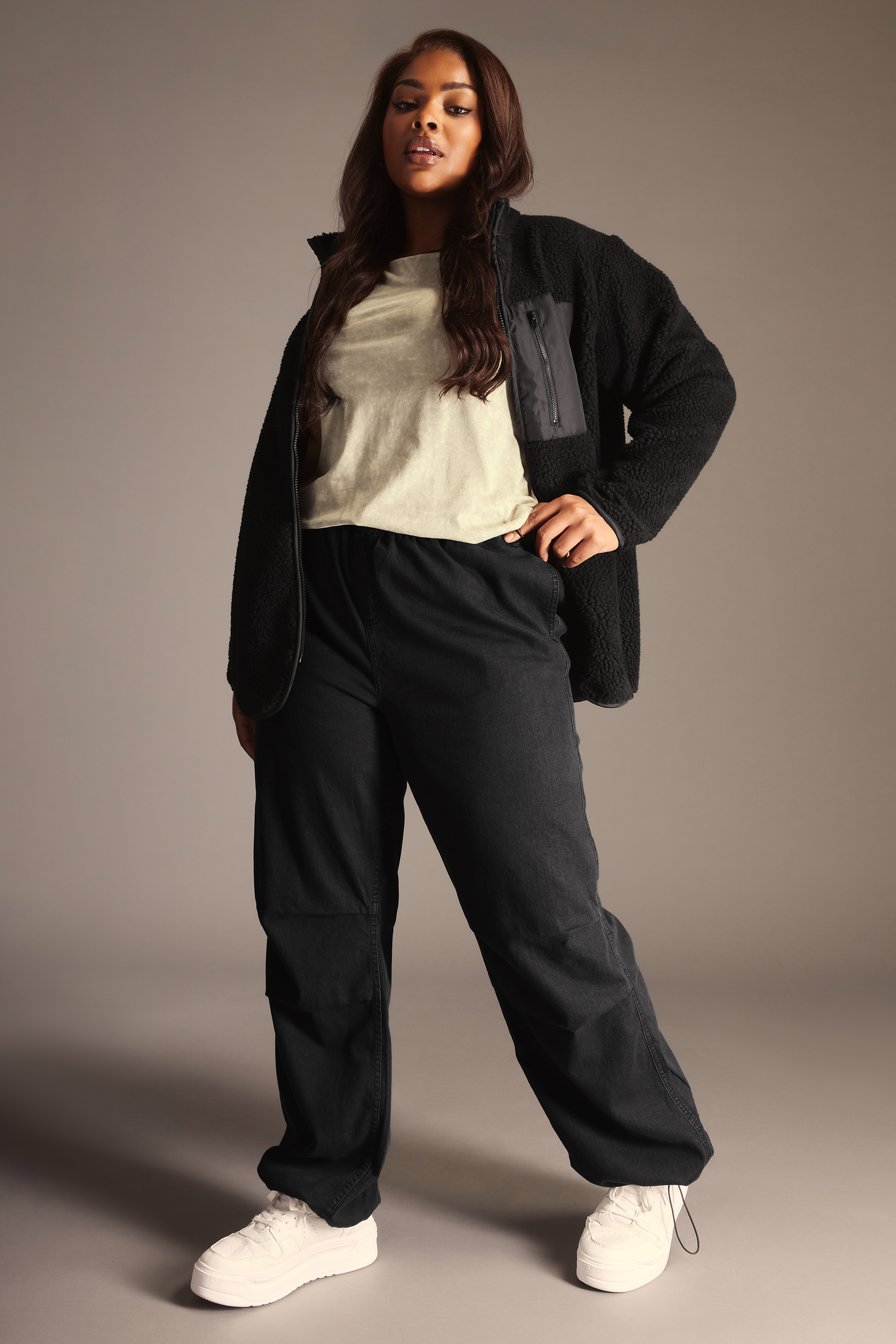 Stay on trend this season with these must-have parachute-style jeans. Made from a soft cotton fabric, these parachute jeans feature an elasticated waistband, a drawstring detail, and functioning pockets. Style with trainers and a long sleeve t-shirt for a cool and comfortable everyday look.