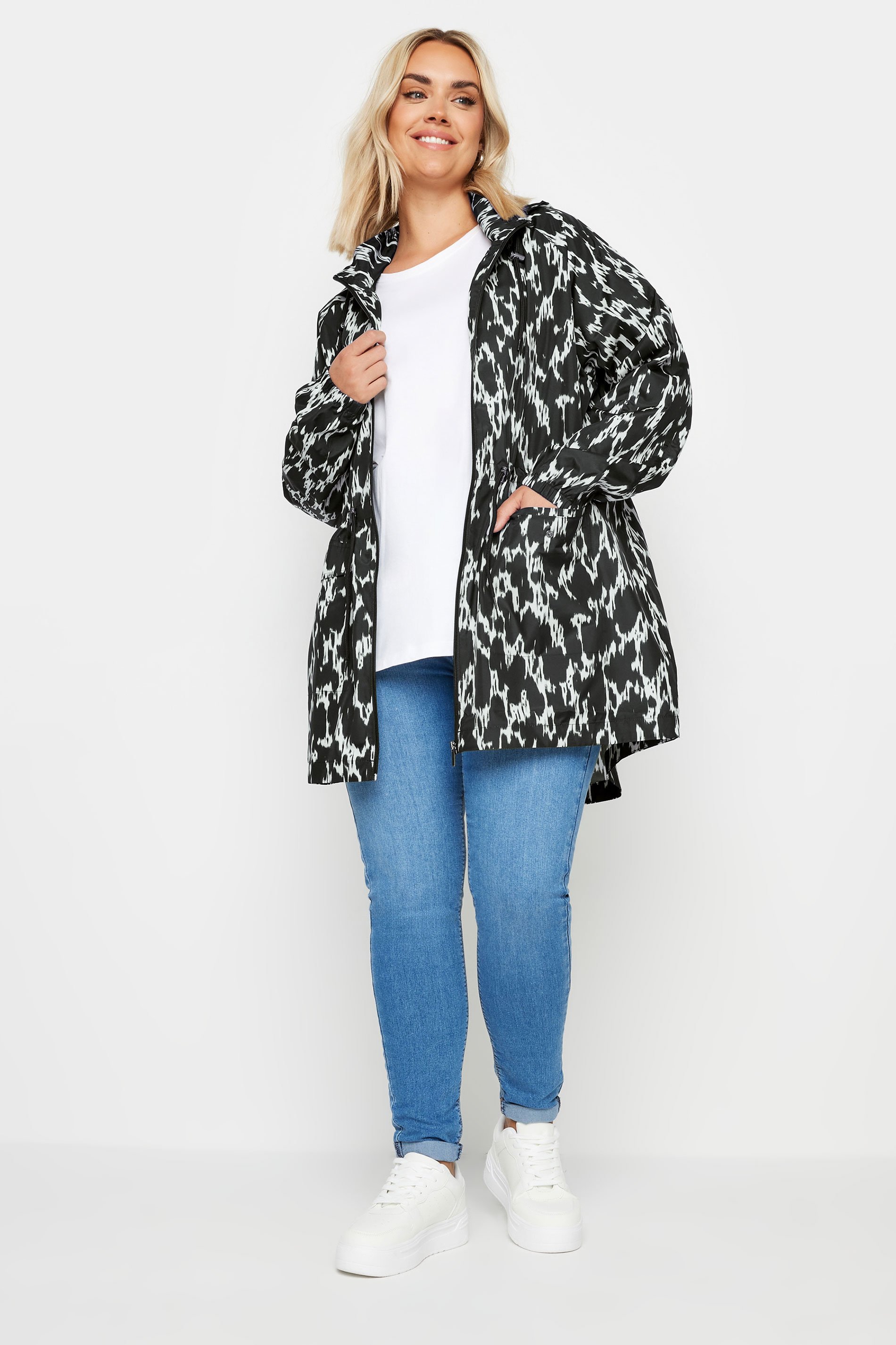 • YOURS Curve Black Abstract Print Lightweight Parka Jacket