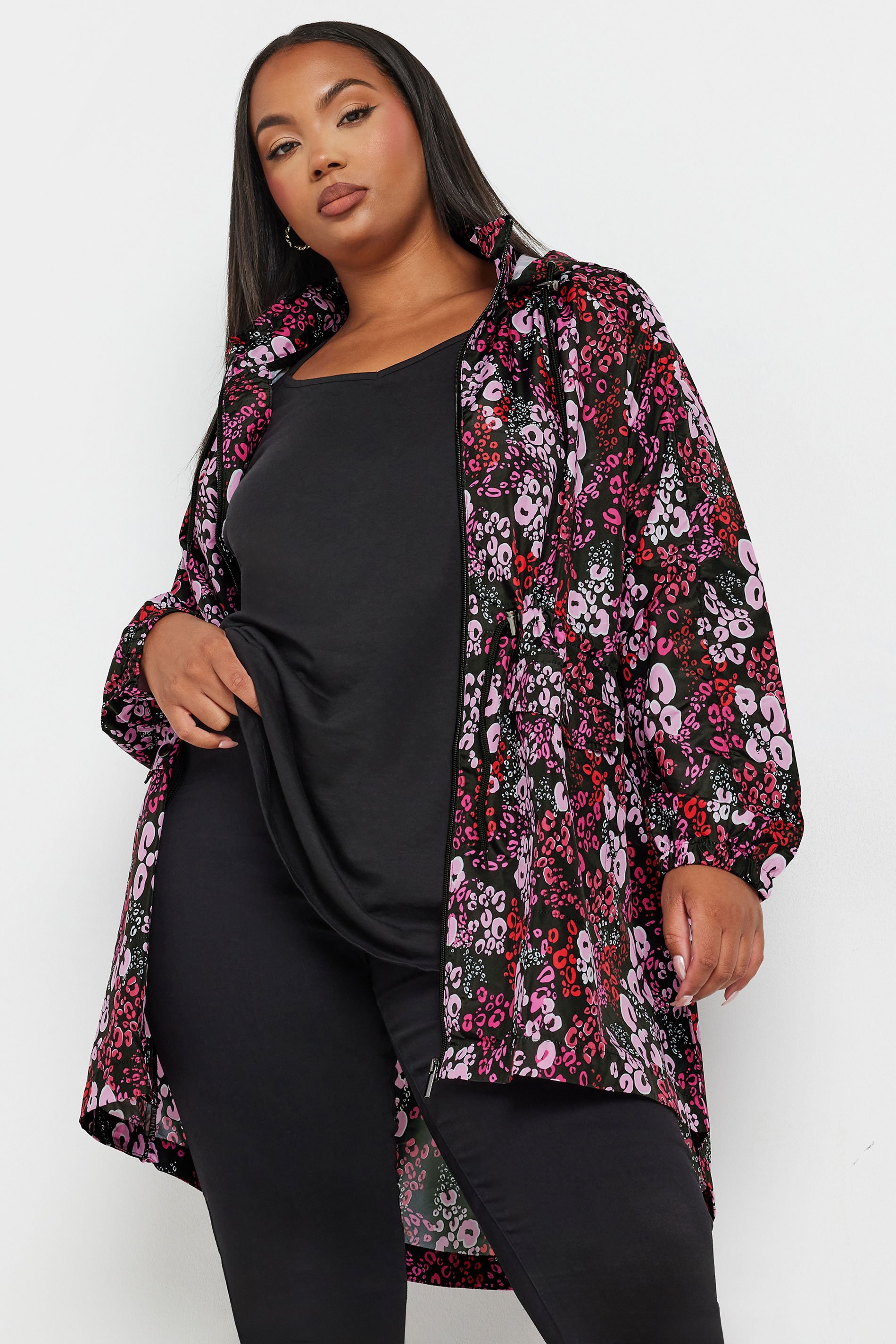 • YOURS Curve Pink Leopard Print Ligtweight Parka Jacket