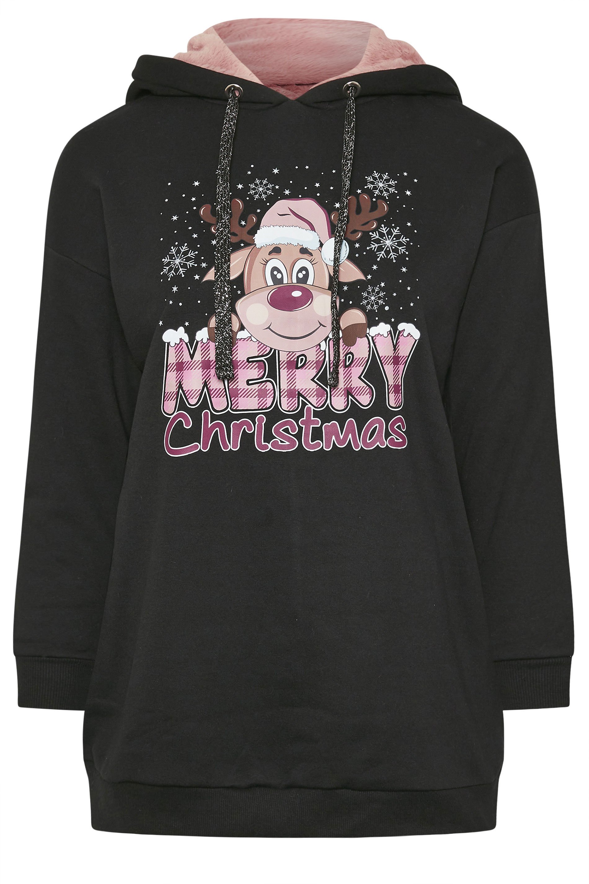 Prepare for Christmas with this must-have 'Merry Christmas' slogan reindeer print hoodie. Made from a comfortable cotton blend fabric, it features long sleeves and drawstring fastenings with metallic thread detail. Pair with jeans and boots for the ultimate festive look you will love.