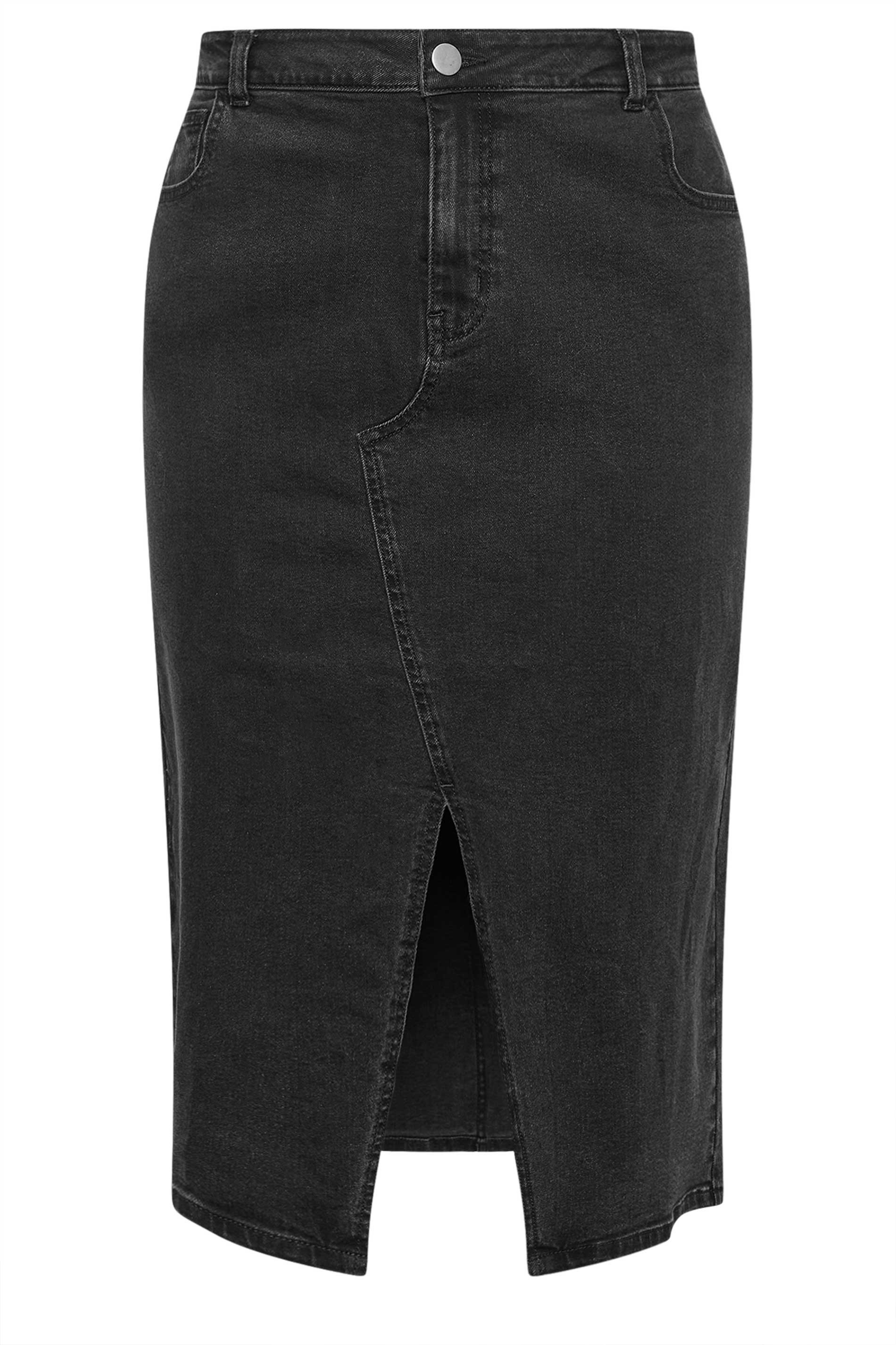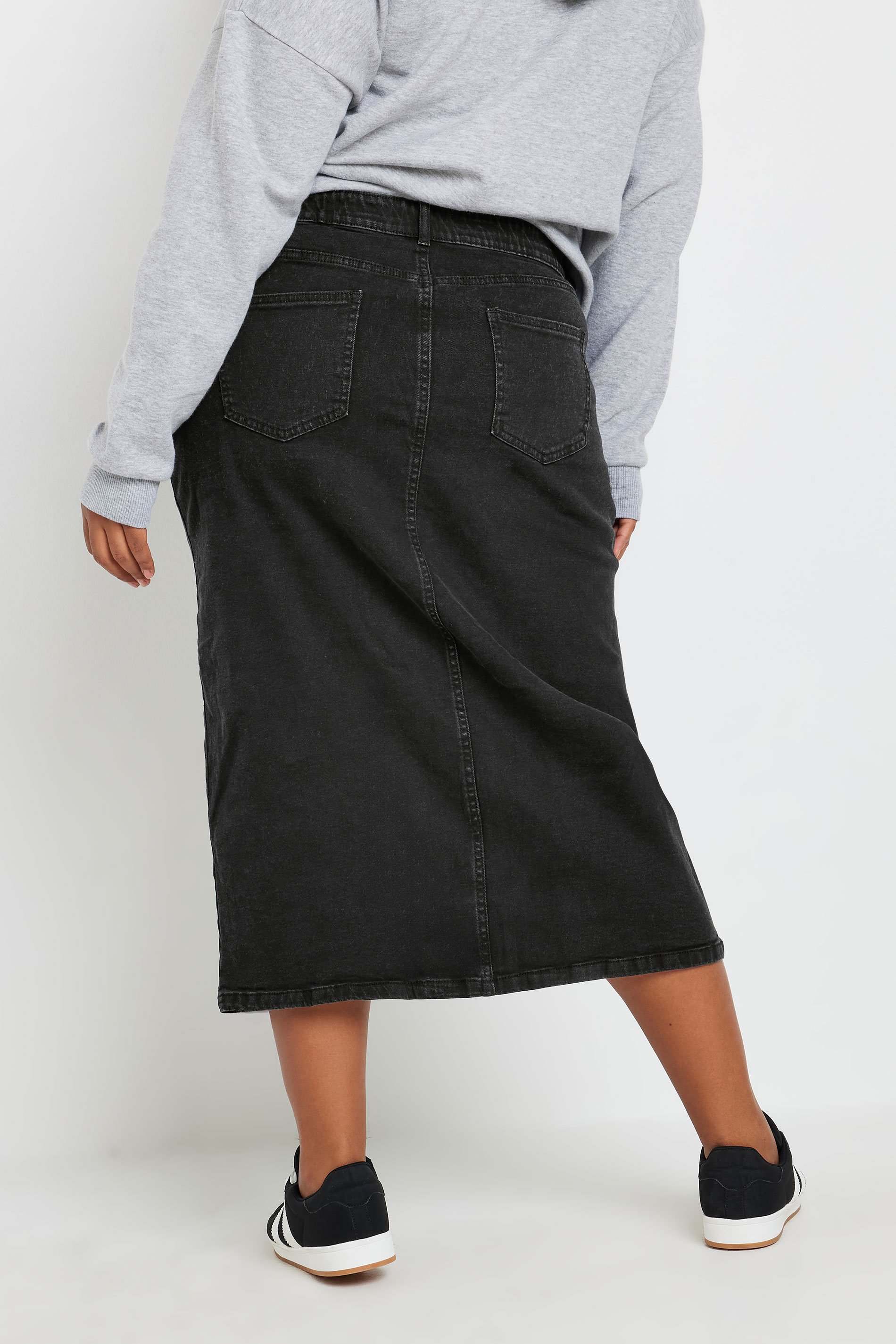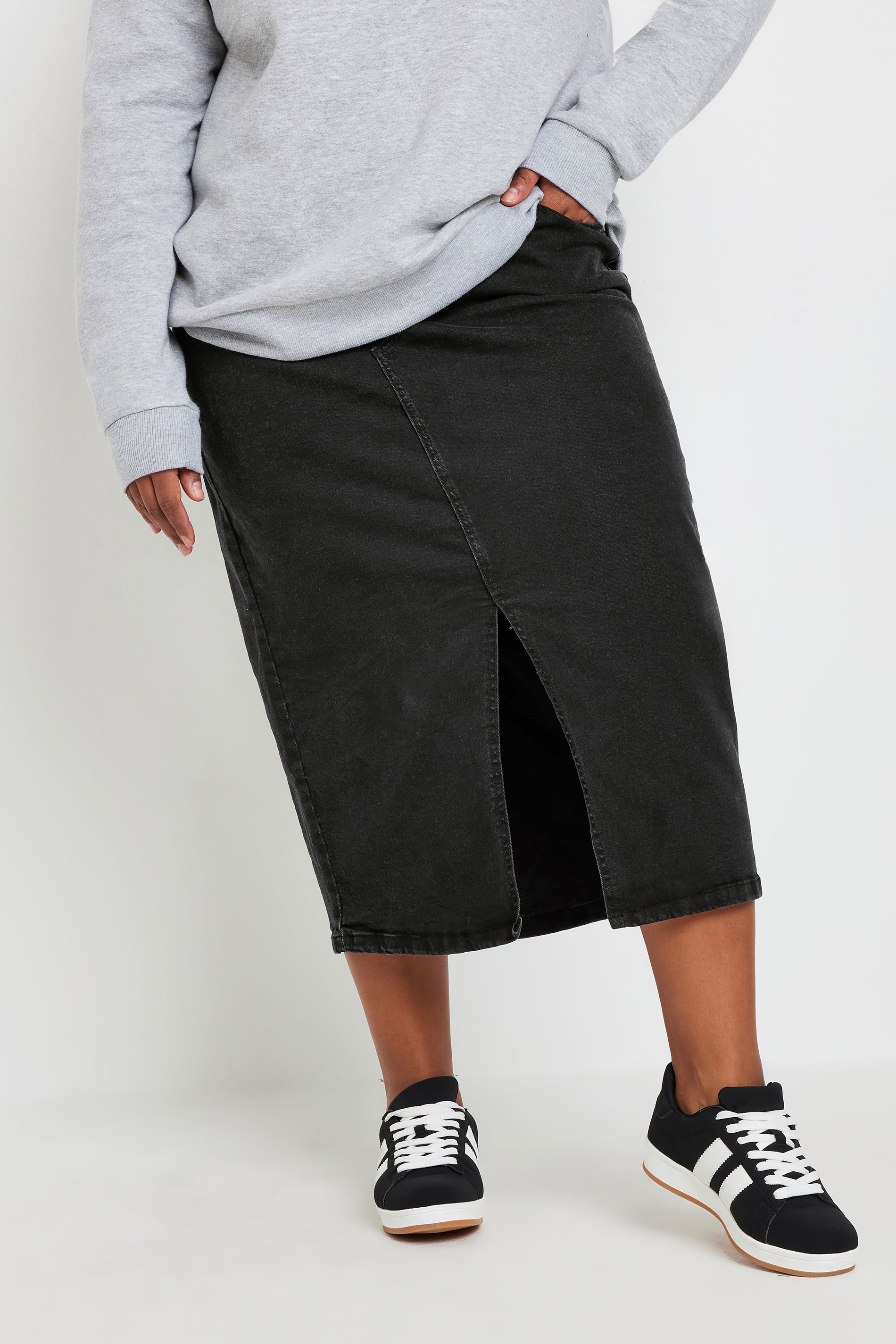 YOURS Curve Black Midi Stretch Denim Skirt 251185