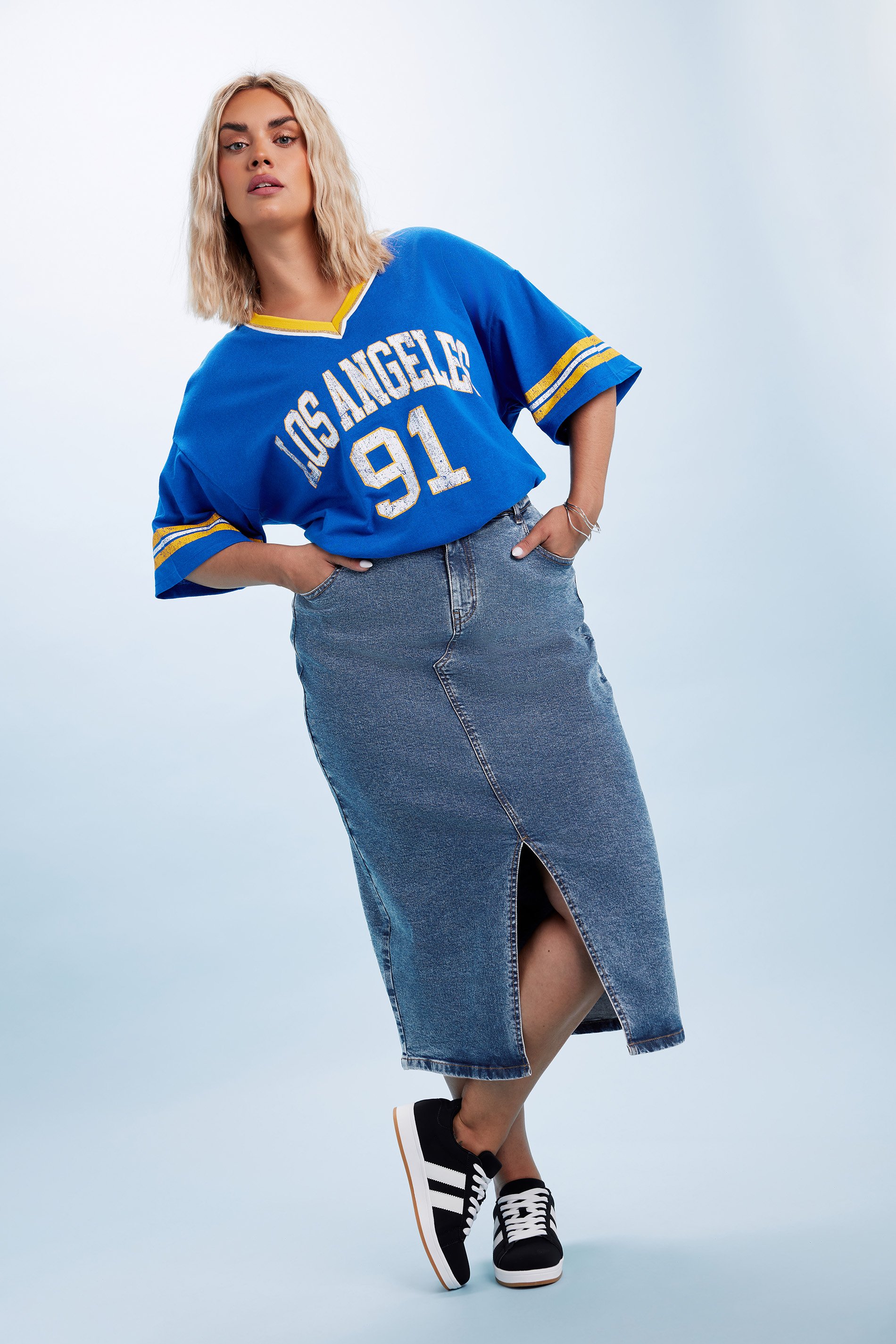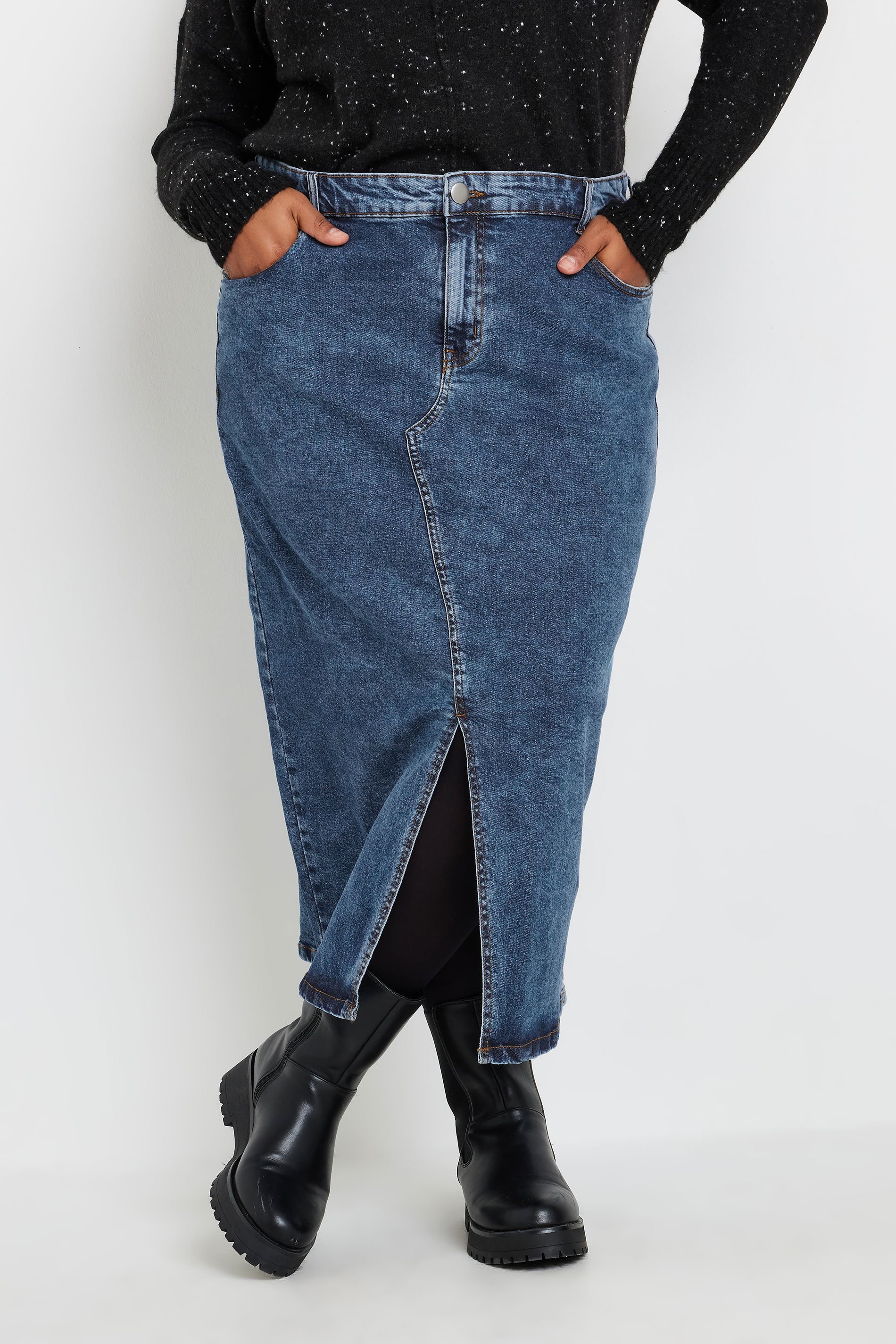 • YOURS Curve Blue Midi Stretch Denim Skirt