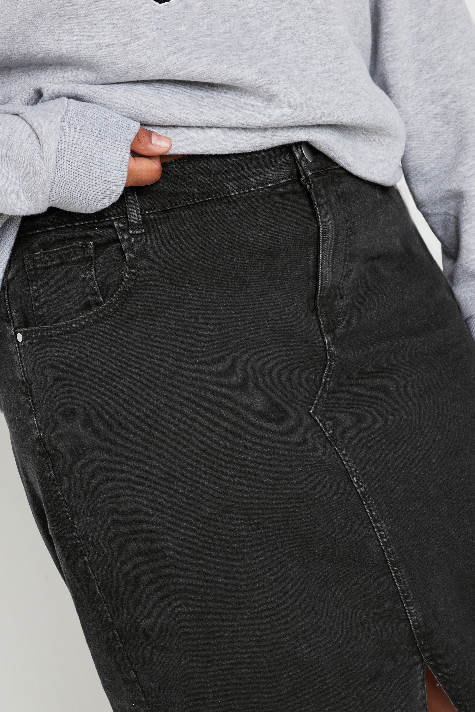 • YOURS Curve Black Midi Stretch Denim Skirt