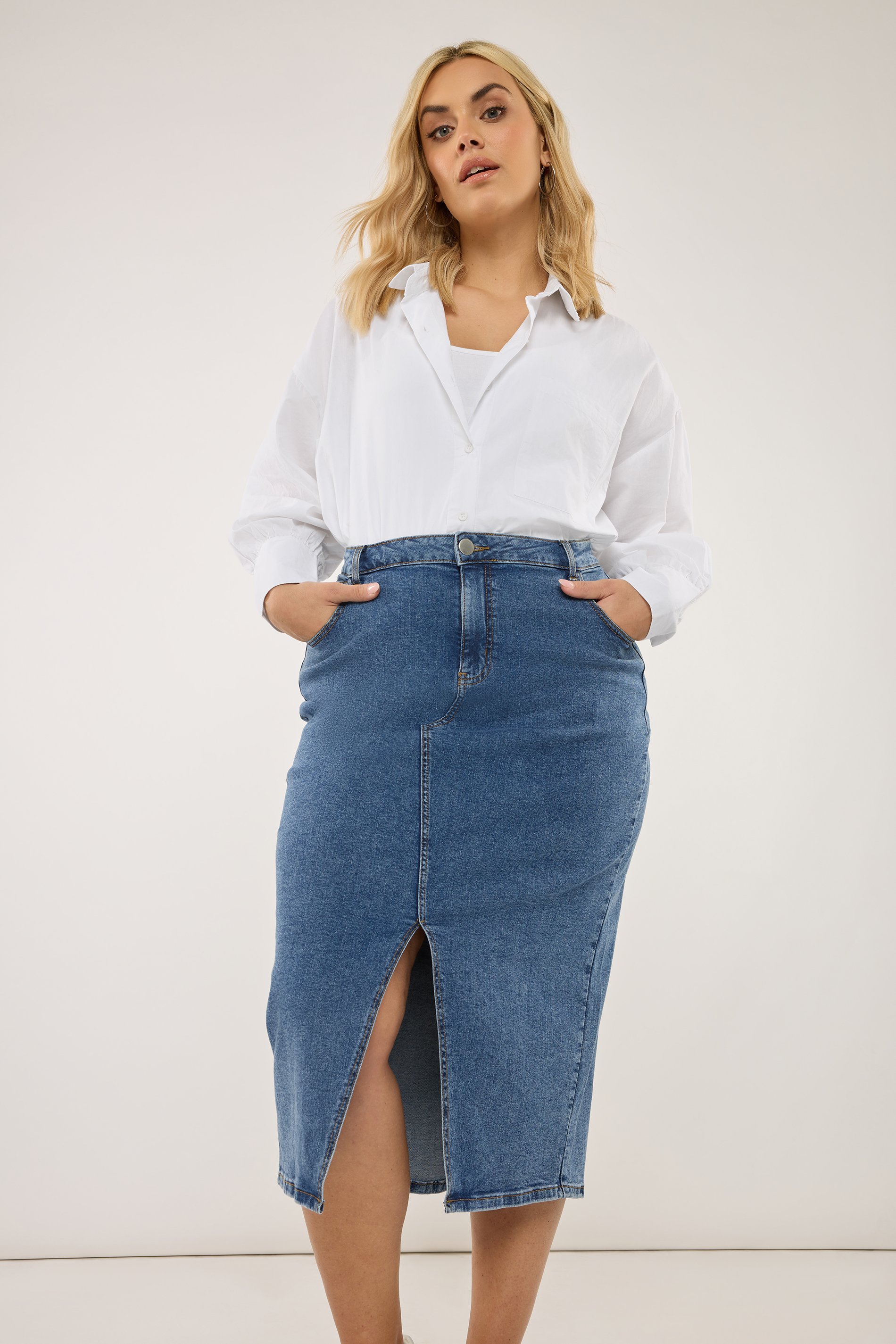 • YOURS Curve Blue Midi Stretch Denim Skirt