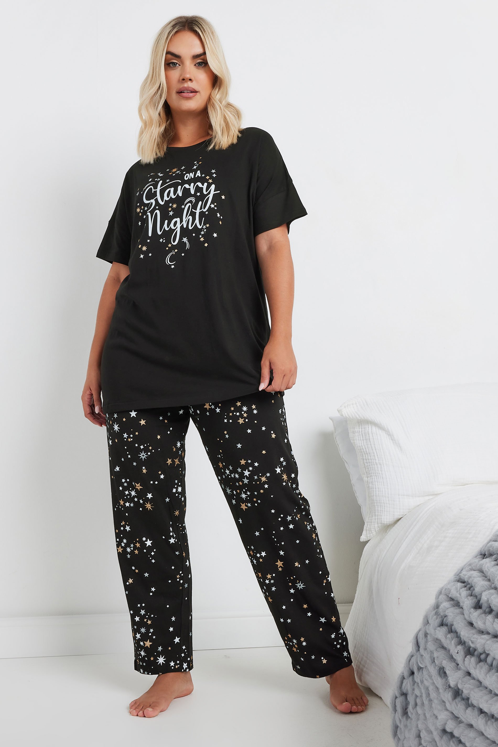 These stylish pyjamas are perfect for gifting this festive season! Made from a pure cotton fabric, they feature a 'On A Starry Night' slogan print, a star print design, short sleeves, and wide leg trousers with an elasticated waistband. Pair with your favourite slippers for a perfect cosy night-in look!
