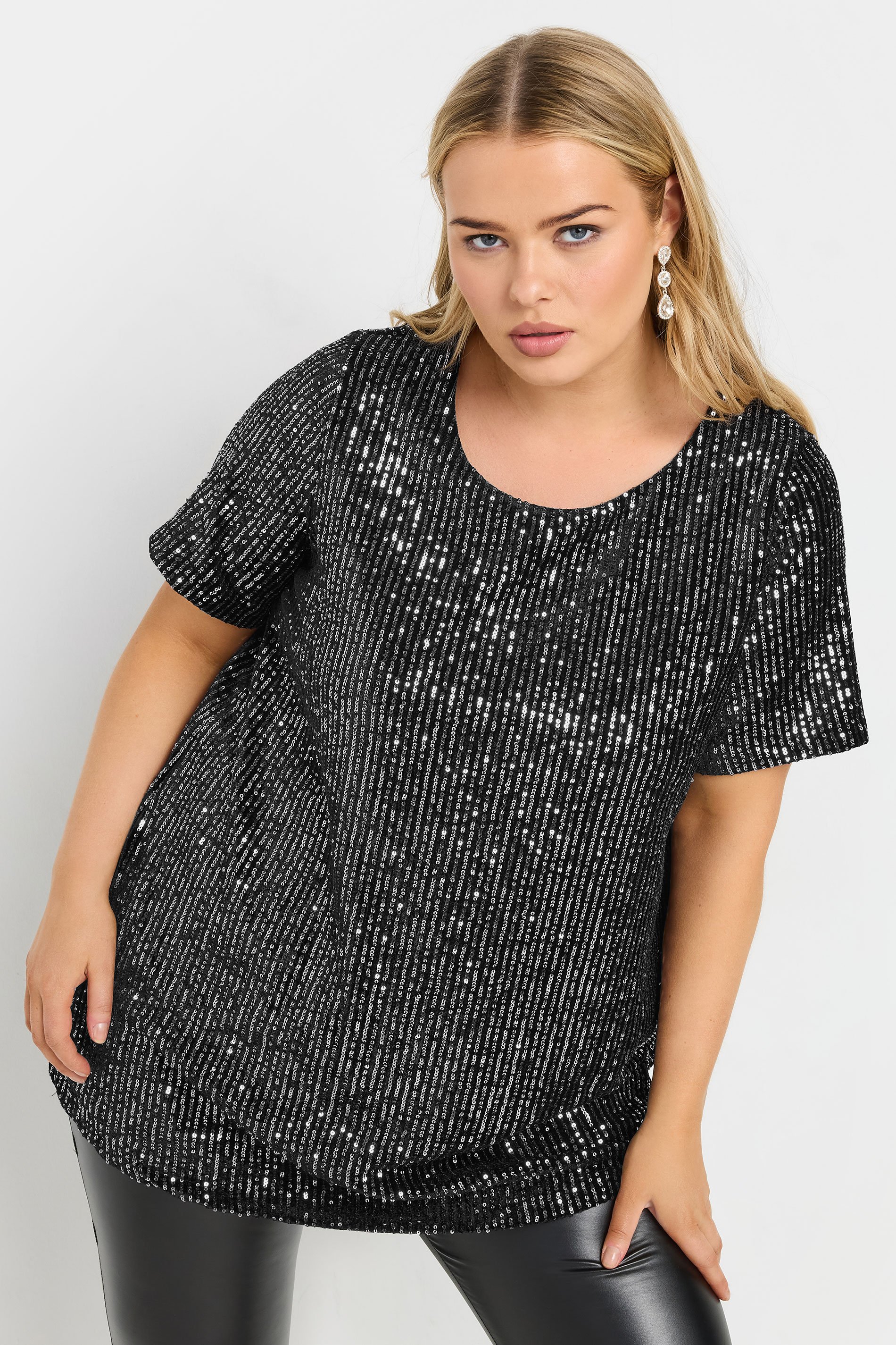 This must-have top was designed with parties in mind. Made from a soft velvet fabric, it features sequin embellishment with short sleeves and a crew neckline. Team with jeans and heels for an effortless look that is perfect for your next social occasion.