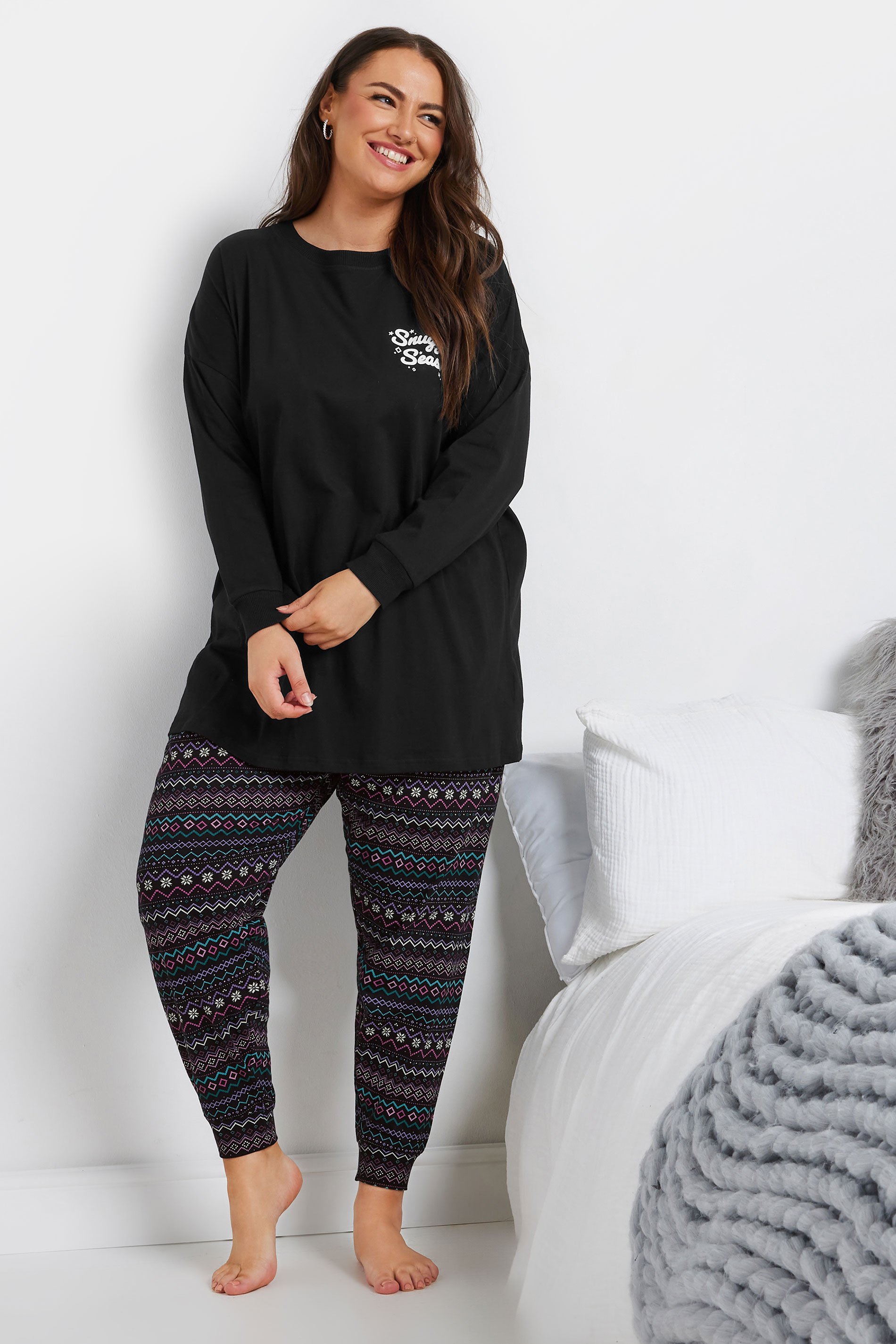 Sleep in style with this must-have pyjama set! Made from a pure cotton fabric, it features a 'Snuggle Season' slogan print, a fairisle print design, cuffed trousers, and an elasticated waistband. Pair with your favourite slippers for a cosy night in!