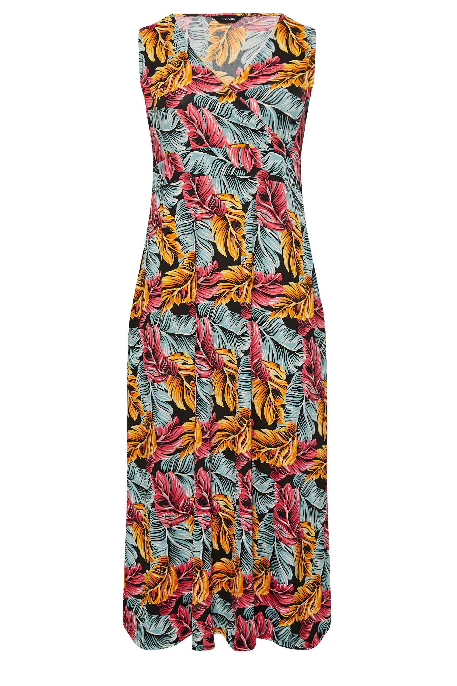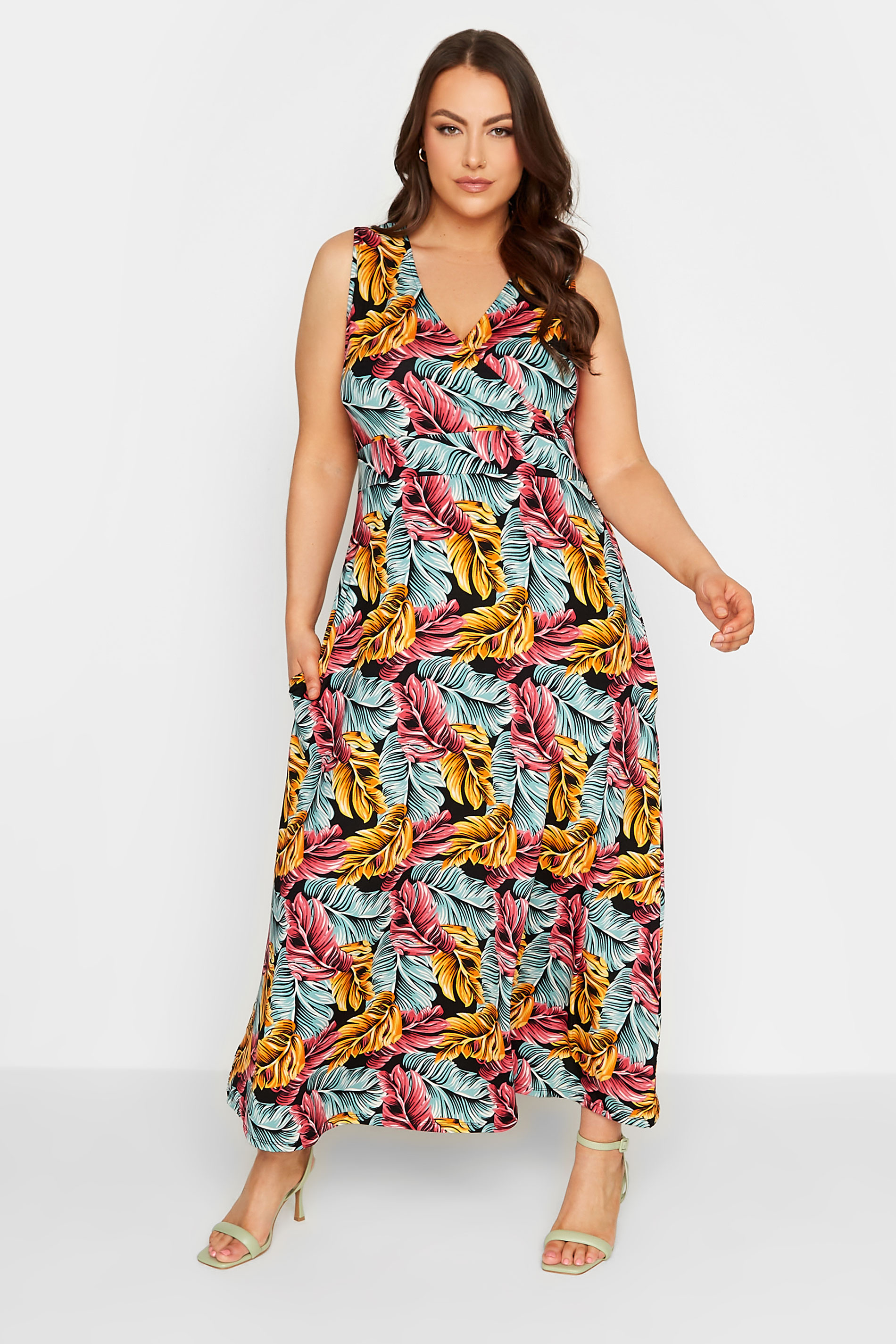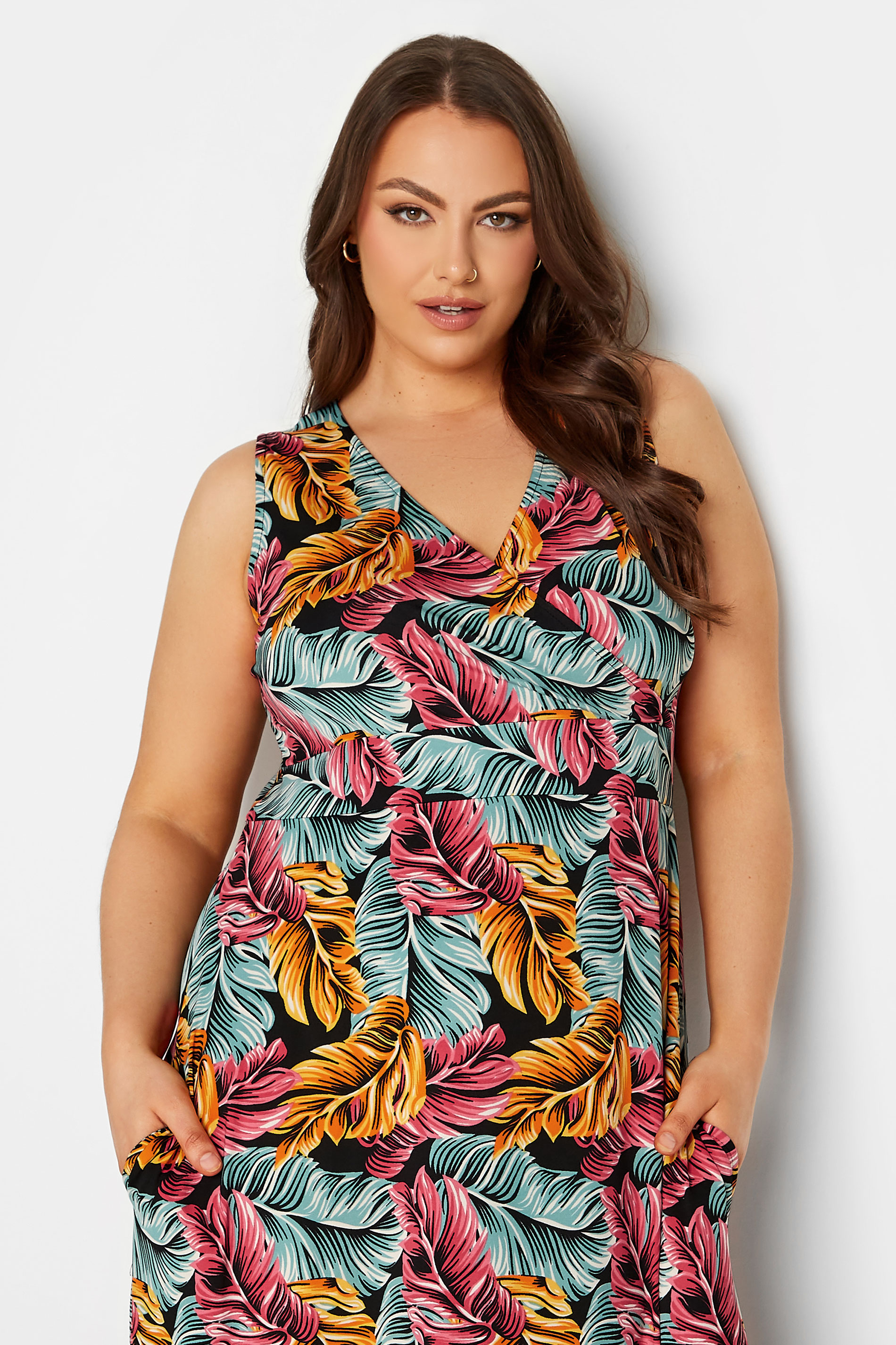 Freshen up your prints for the new season with this plus size maxi dress. Made from stretch jersey, it features a sleeveless design with a flattering wrap v-neckline, finished in a tropical leaf print. Wear with heels and a shoulder bag for an occasion-ready look.