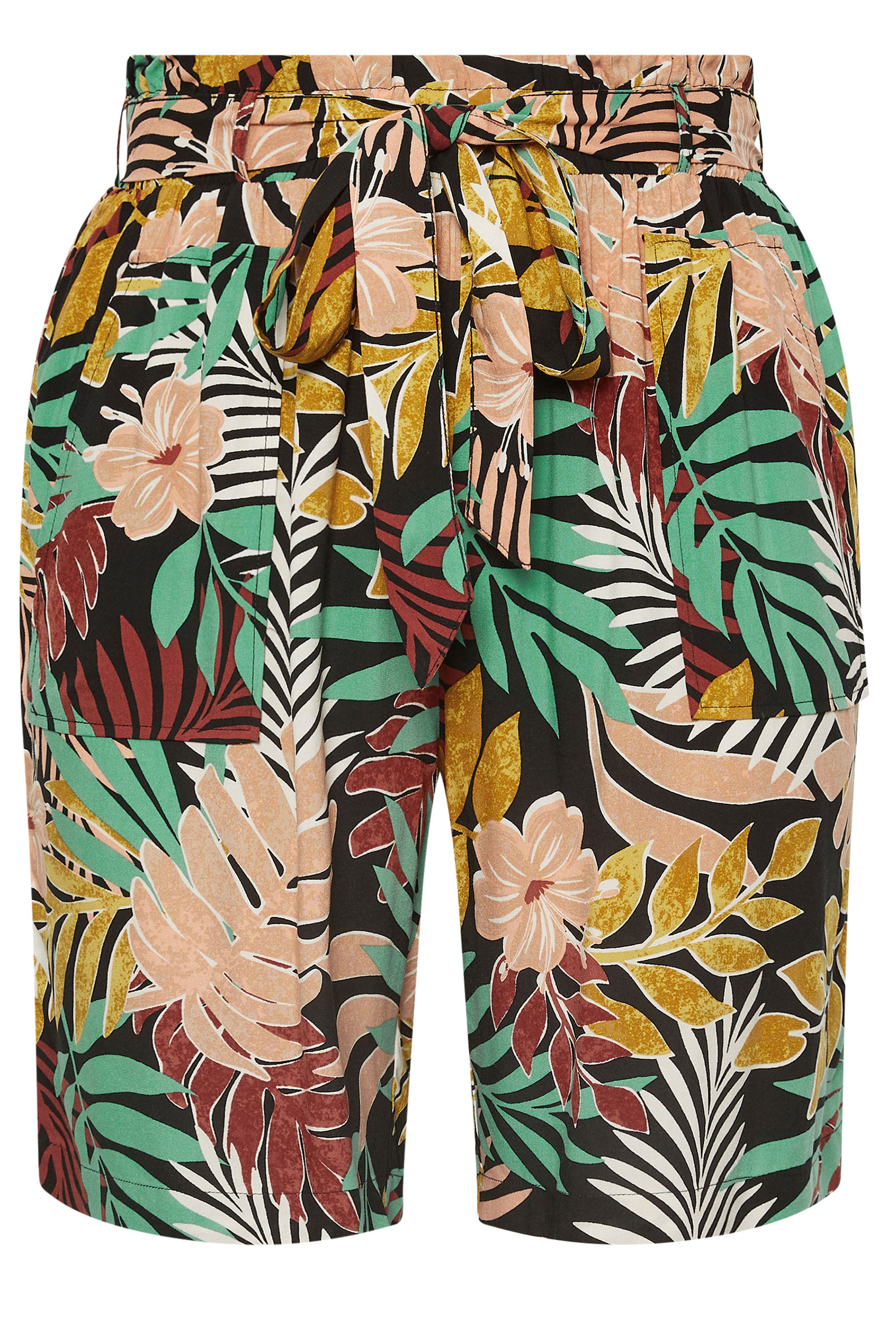 YOURS Curve Black Tropical Print Paperbag Shorts 256162