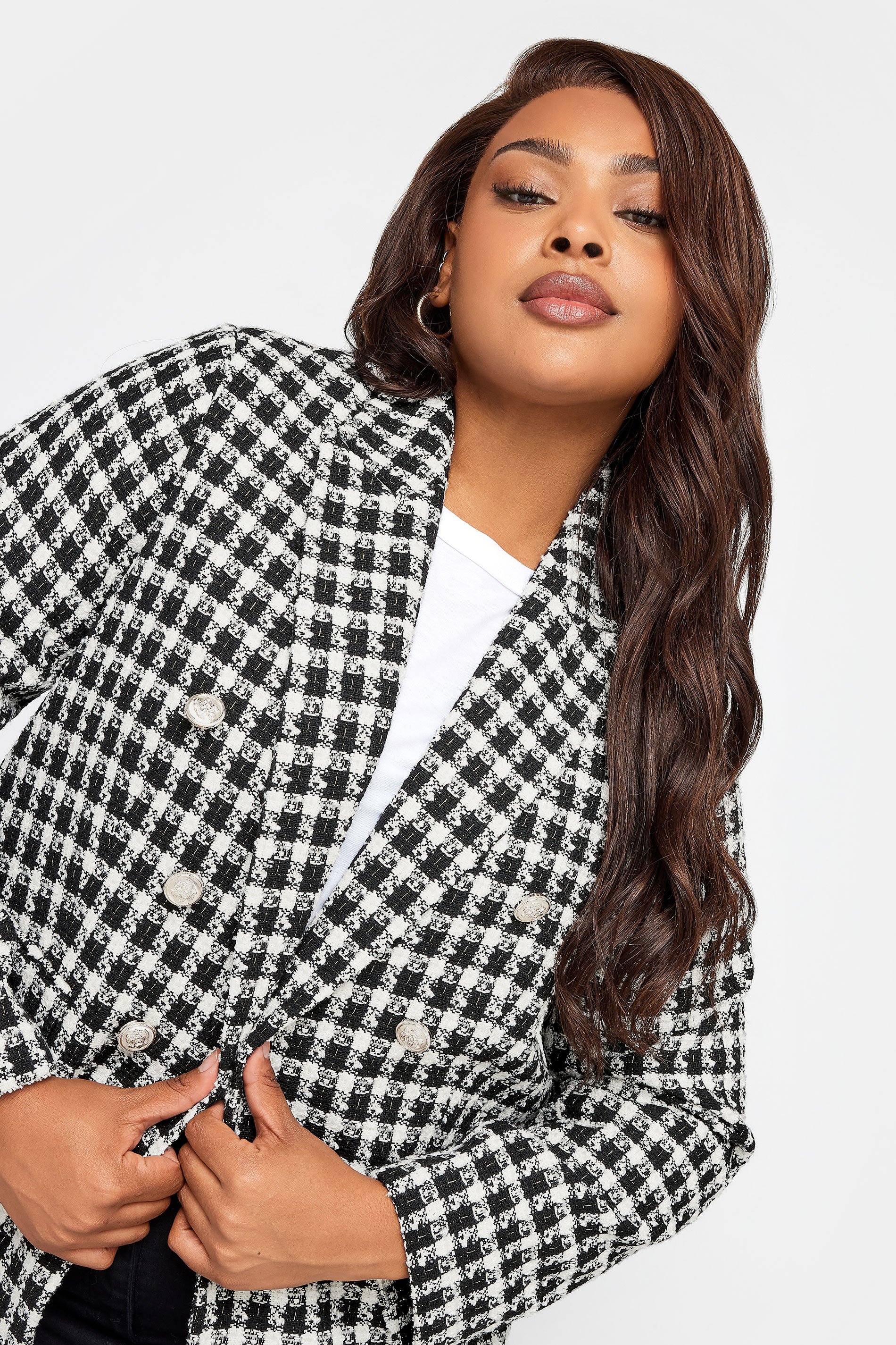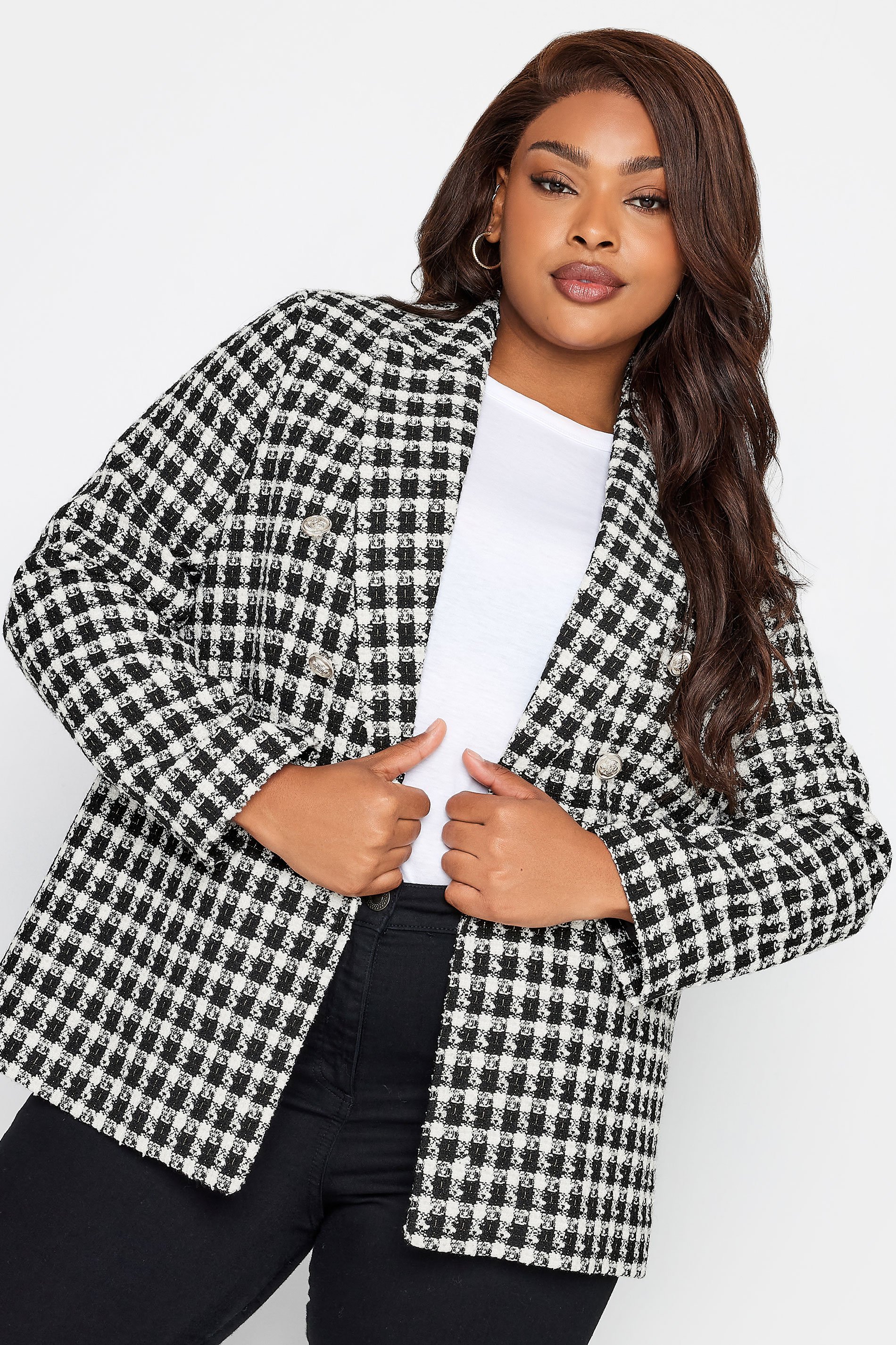 Stay on trend in this new-in plus size blazer. Made from a soft boucle fabric, it features a check pattern, a collared neckline and button front. Simply partner with shirt and trousers for an effortless look that will take you from desk-to-dinner in style.