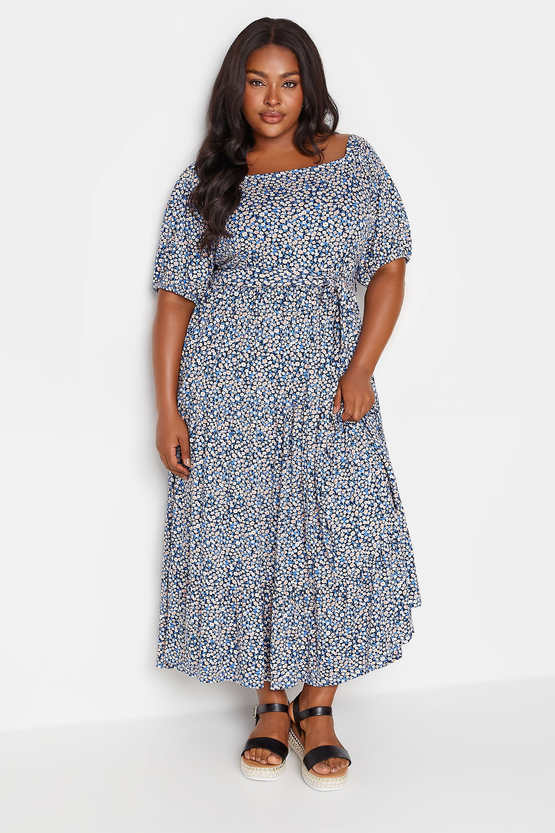 This new-in maxi dress is the perfect option for those casual summer days out. Made from a comfortable jersey fabric, it features a ditsy floral print with a belted tie waist fastening and a tiered design. Team with sandals for an off-duty look that you can wear with confidence.