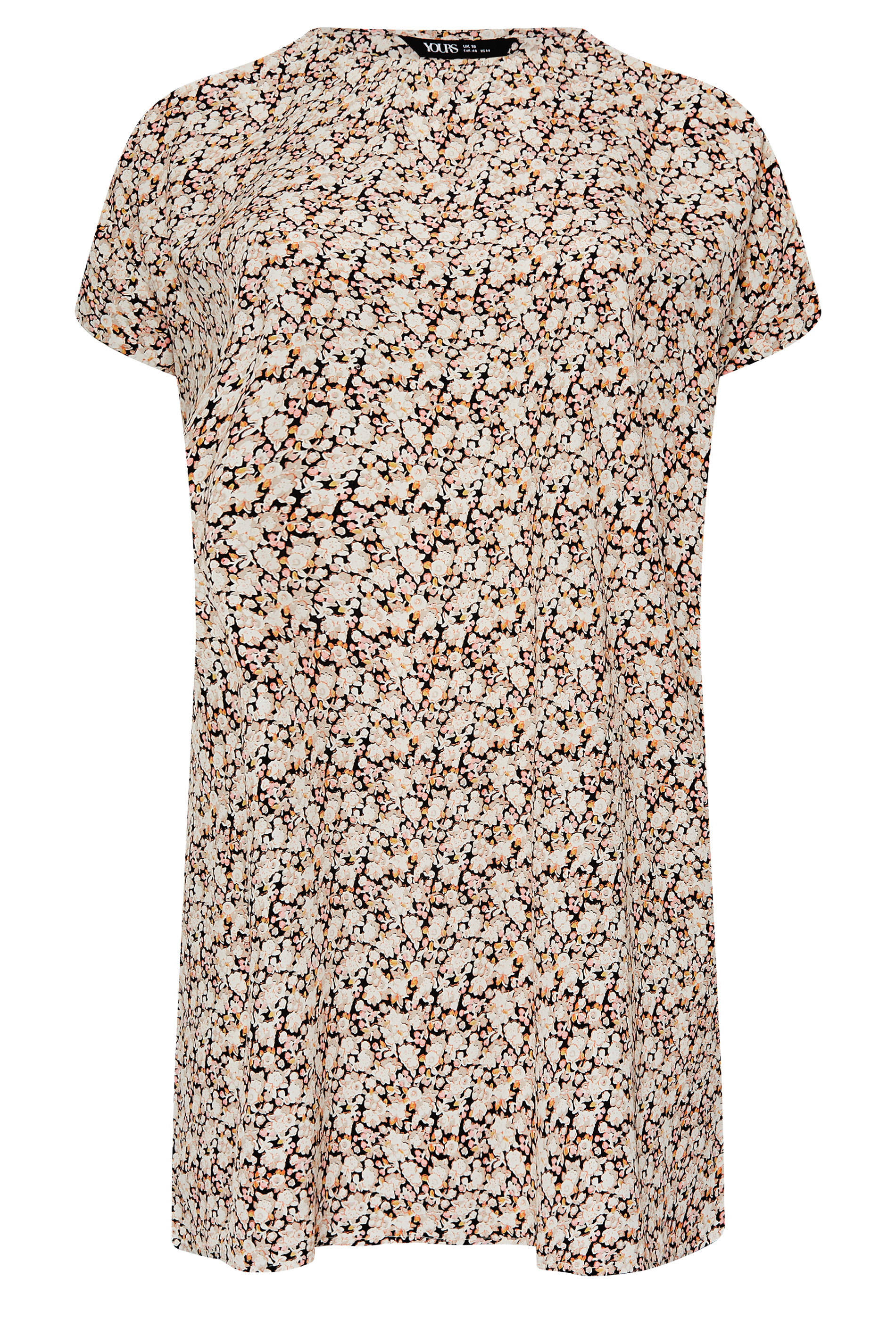 Refresh your style with this new-in plus size shift dress. Designed in a comfortable woven fabric, it features a scoop neckline with short sleeves and a dipped hem, complete in a ditsy print. Pair with sandals or heels to suit your plans.