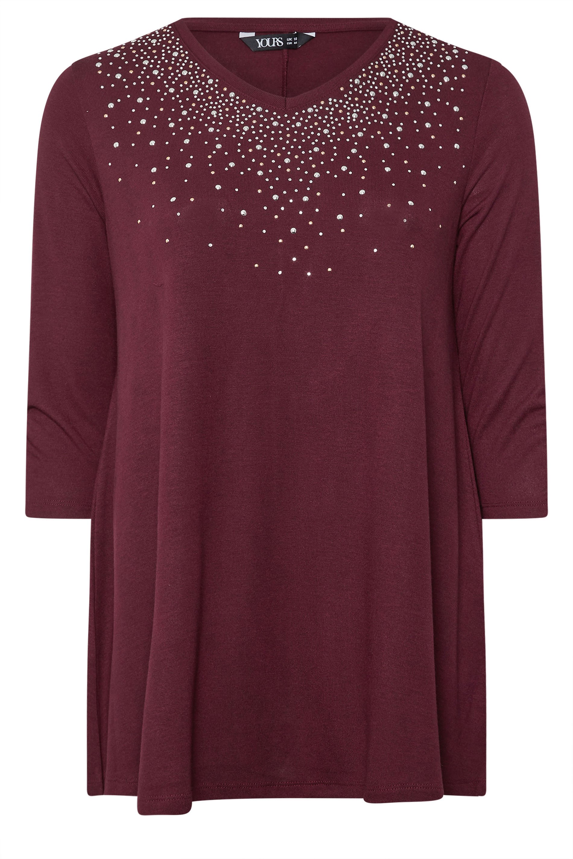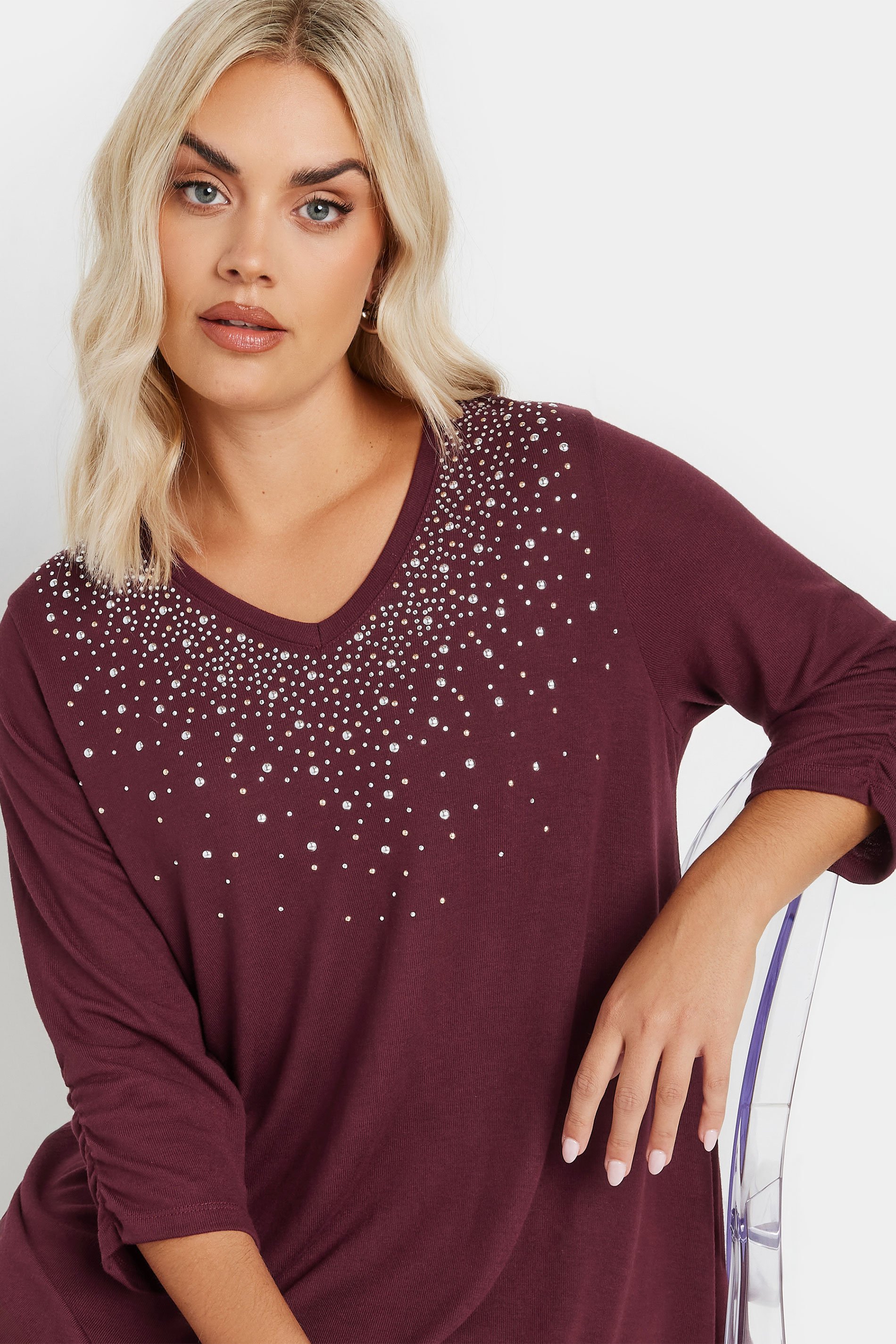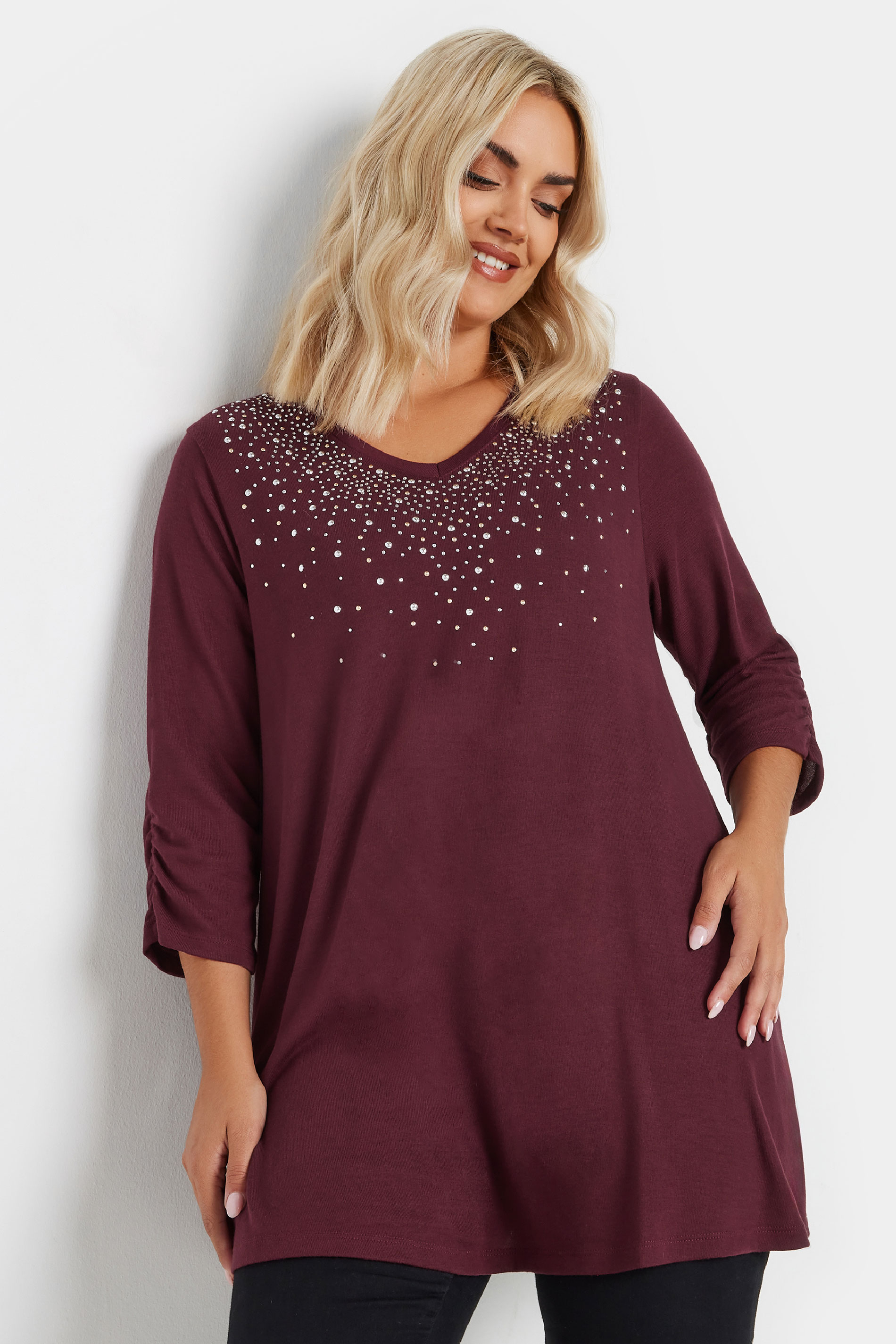 Welcome intricate details to your everyday wardrobe with this new-in top! Made from a comfortable jersey fabric, this top features a swing style, diamante stud details and 3/4 length ruched sleeves. Simply style with your favourite jeans and you're good to go.