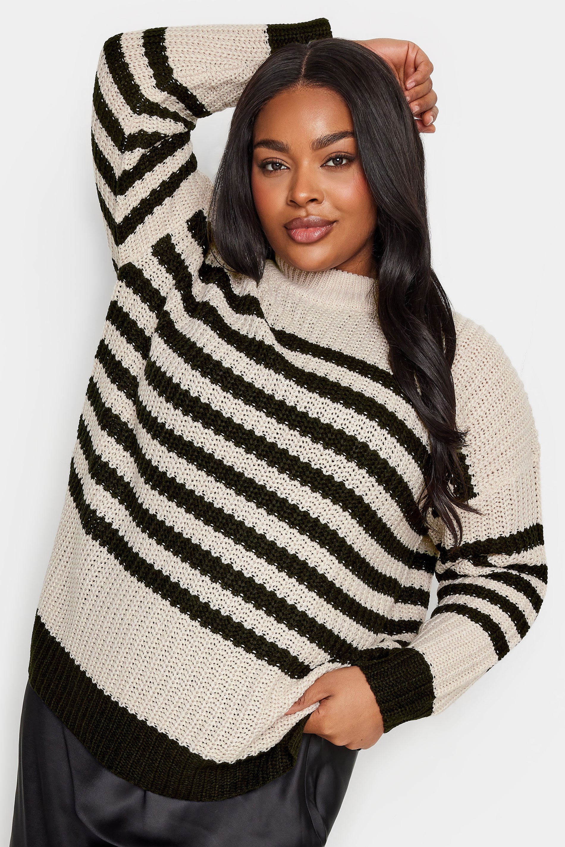 Elevate your knitwear collection this season with this new-in chunky knit jumper. Made from a comfortable knitted fabric, it features a stripe pattern, high neckline and long sleeves. Pair with a midi skirt and boots for a comfy yet stylish look you'll be reaching for all season long.