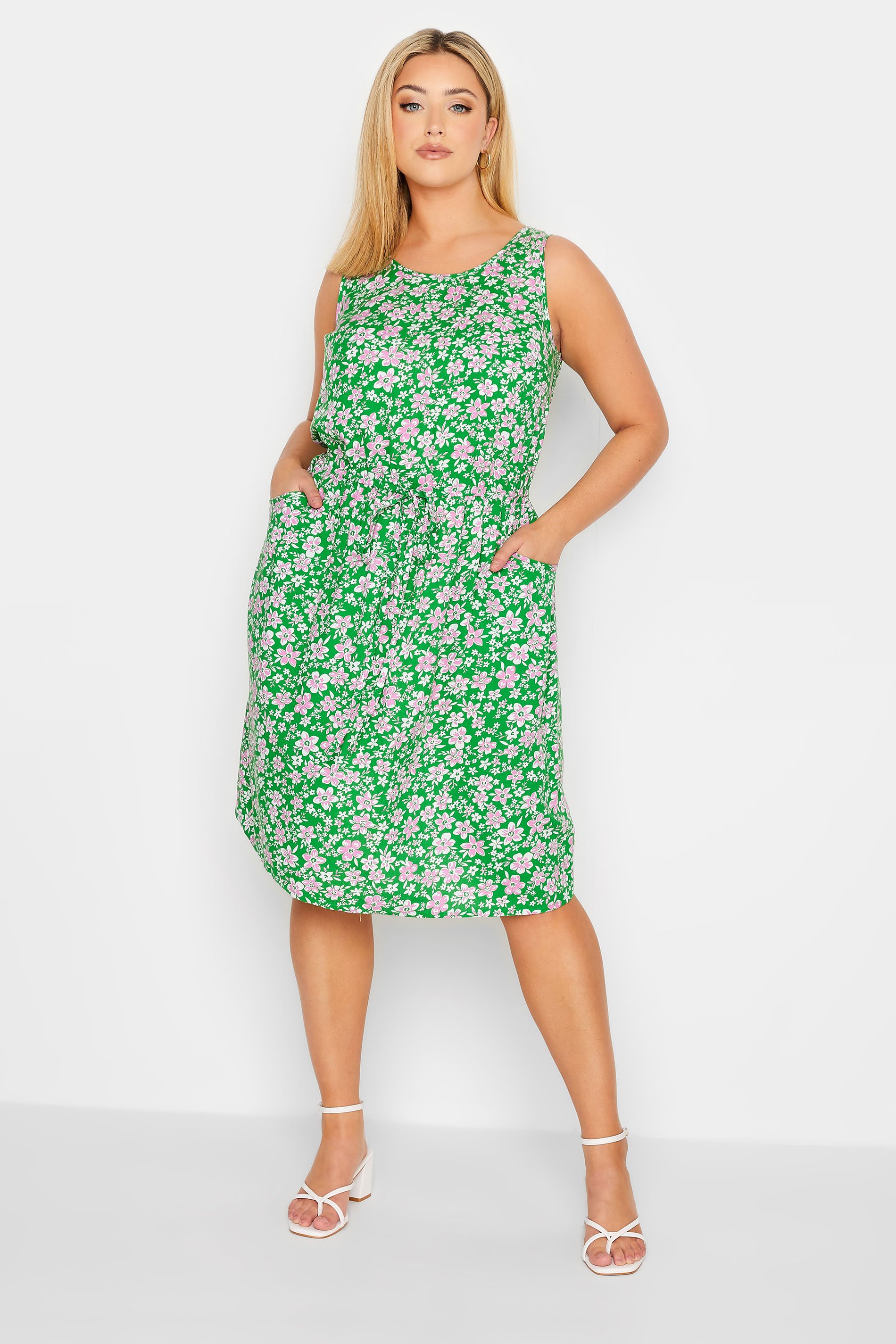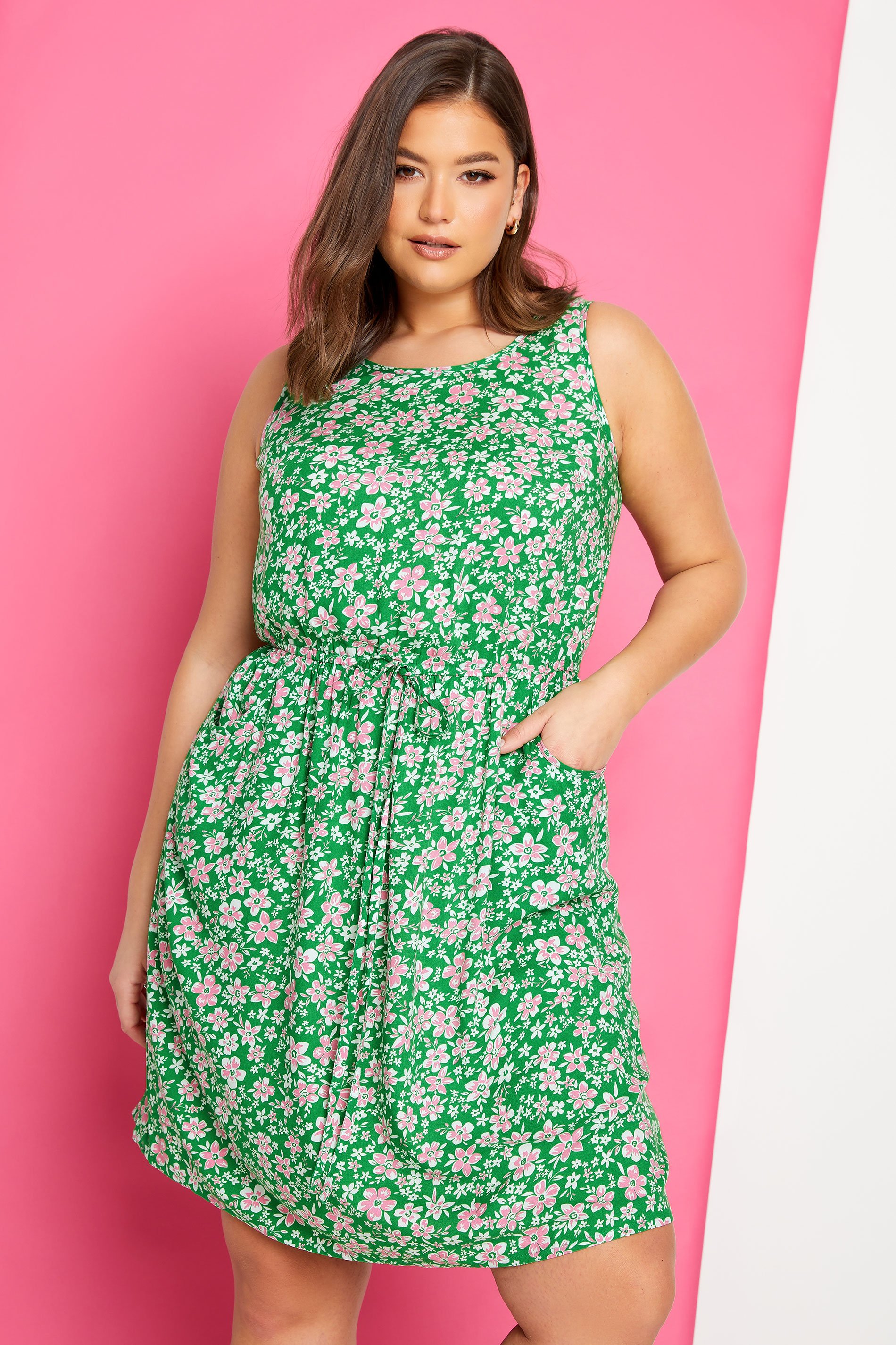 Get summer ready with the new in plus size floral dress! Made from a woven fabric, this dress features a scoop neckline, a mini length, and a ditsy print. Wear with heels for a stylish and effortless weekend look.