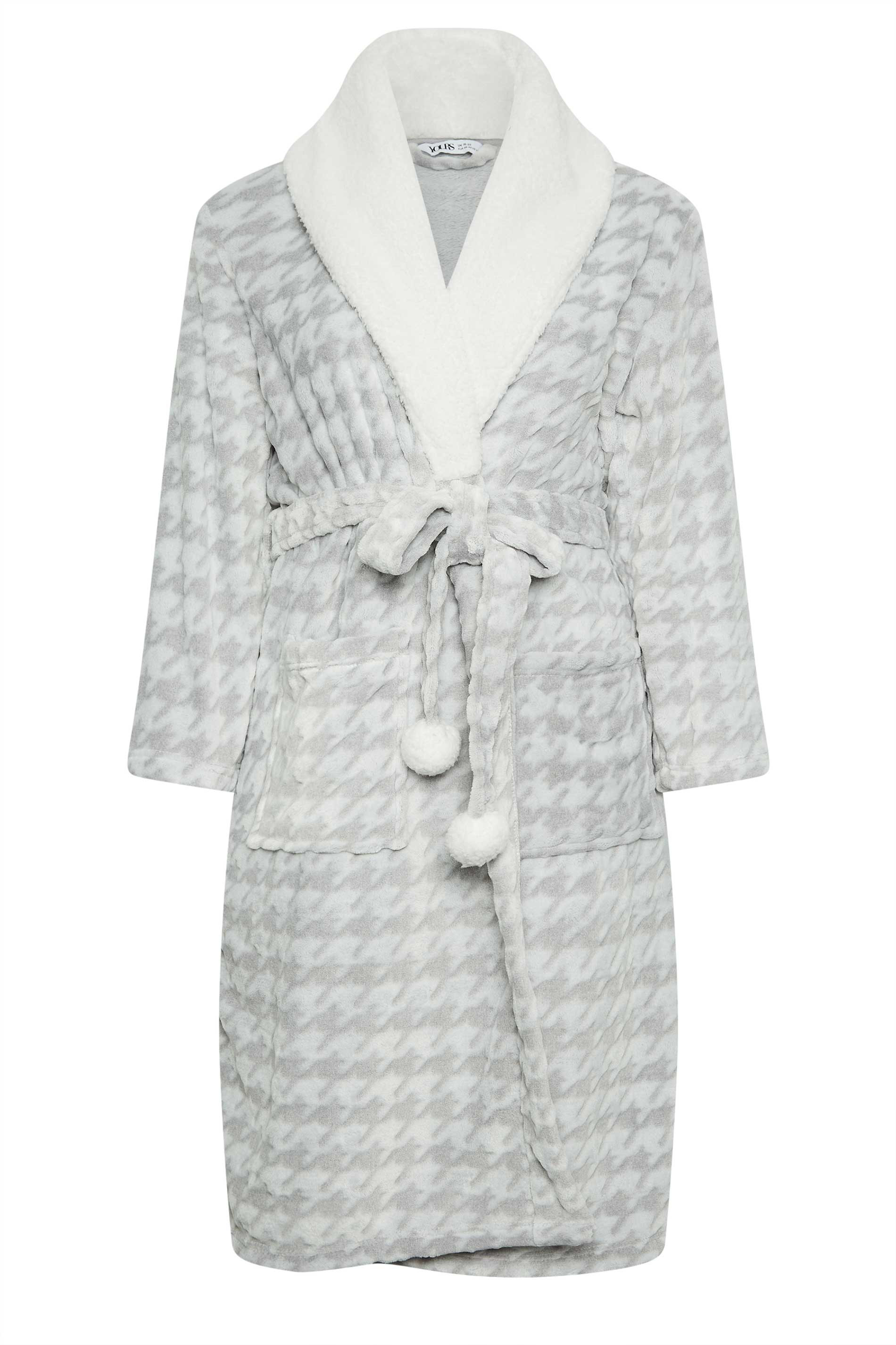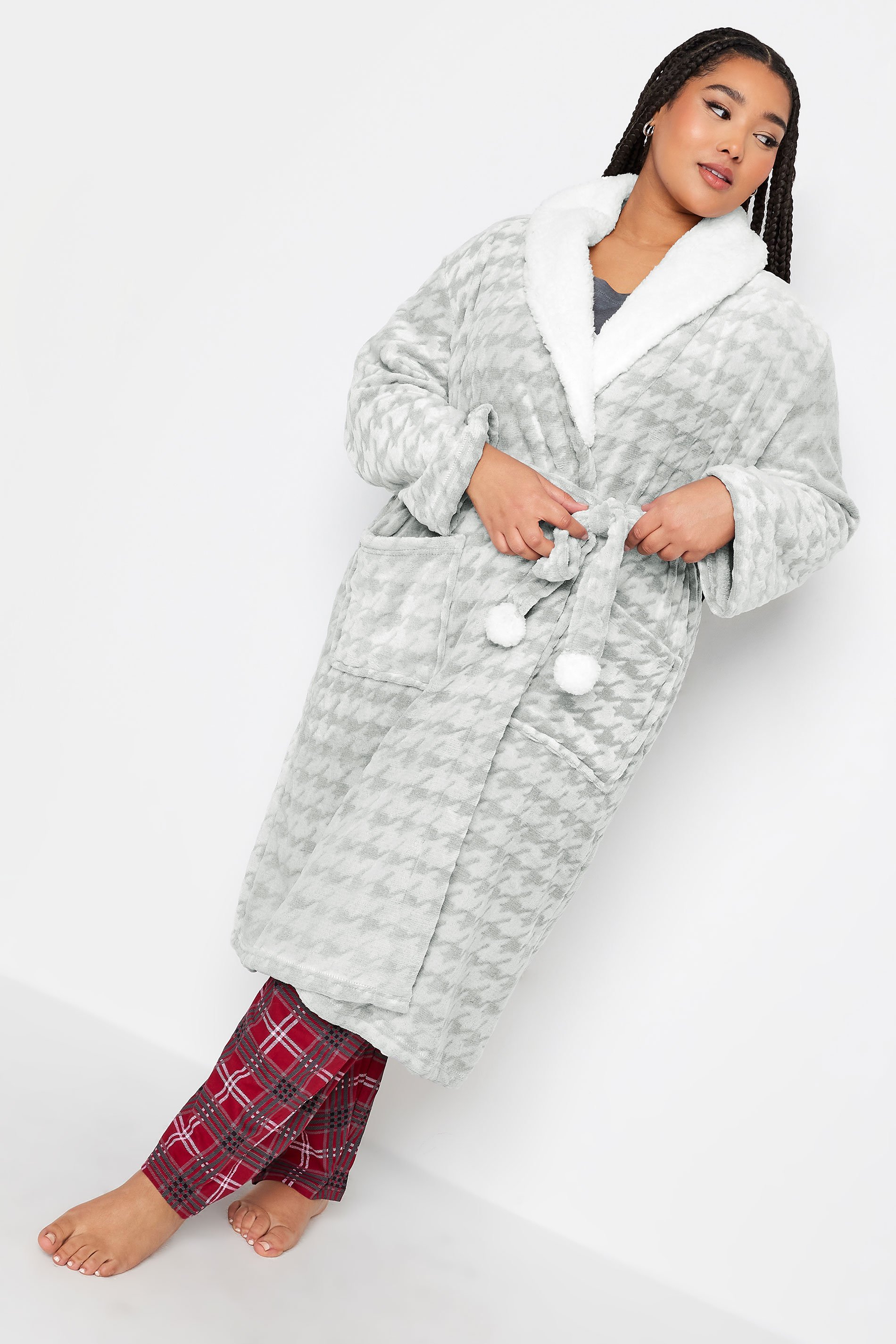 Feel cosy in this soft touch dressing gown! Made from a soft knitted fabric, it features a dogtooth design, maxi length, long sleeves, and a tie waist with belt loops. Drape over your favourite pyjamas for the ultimate comfortable night-in outfit.