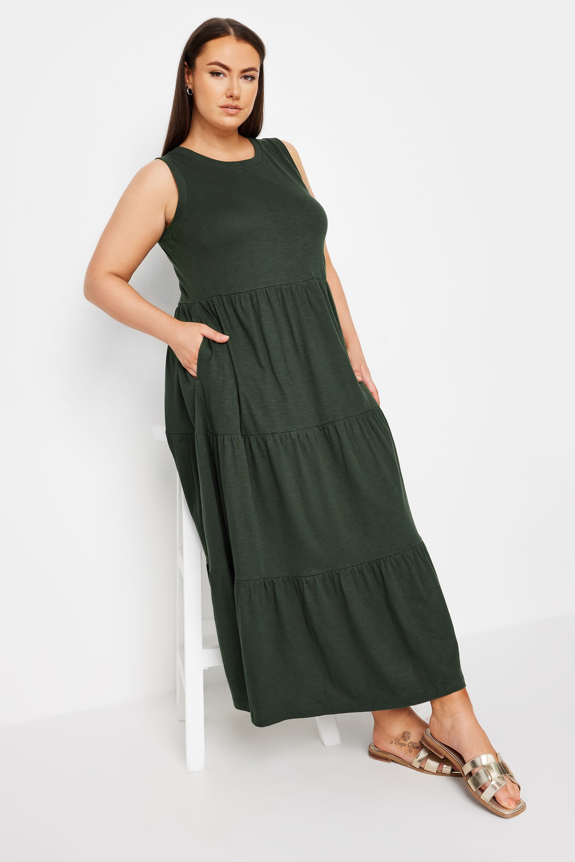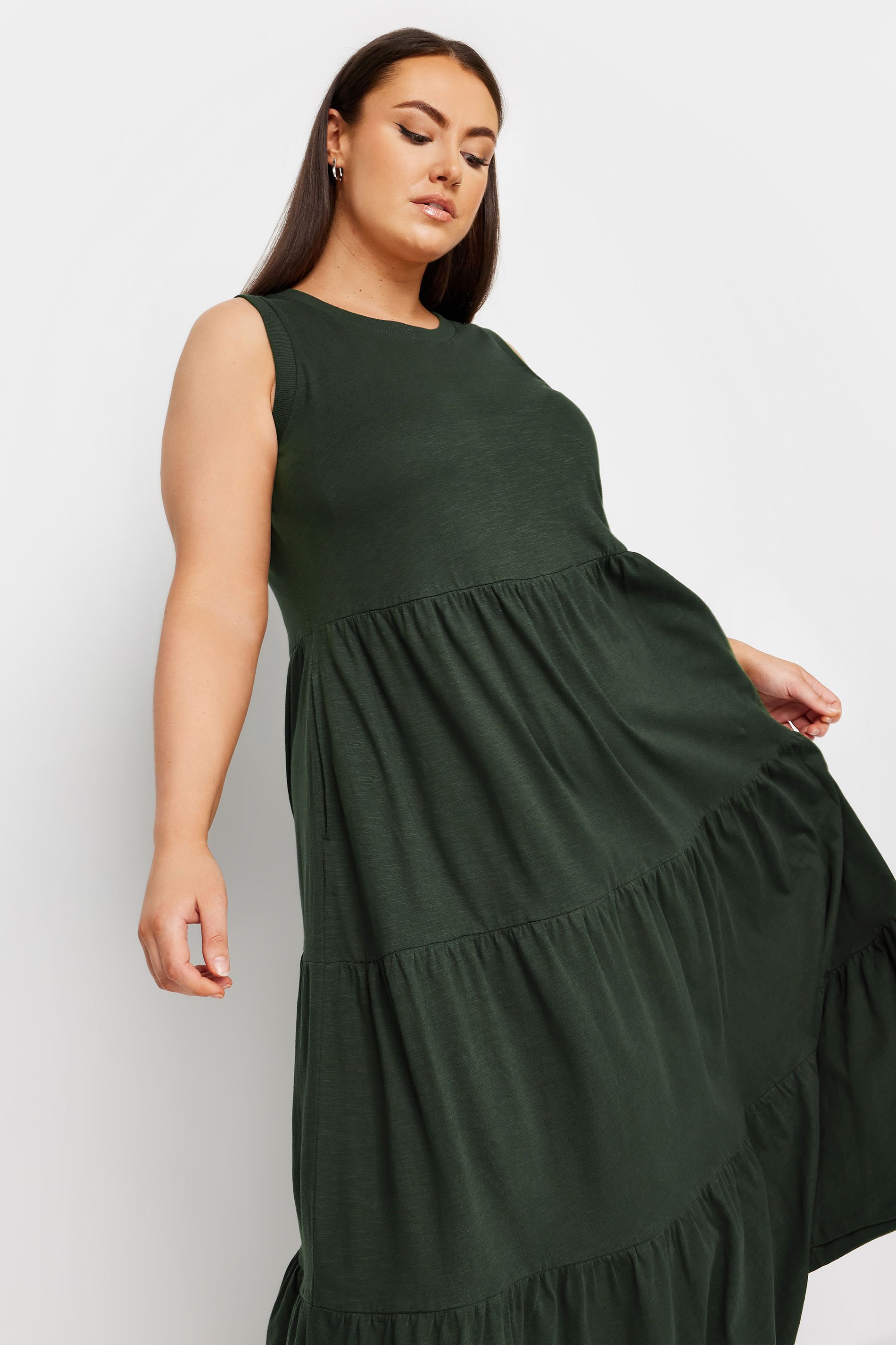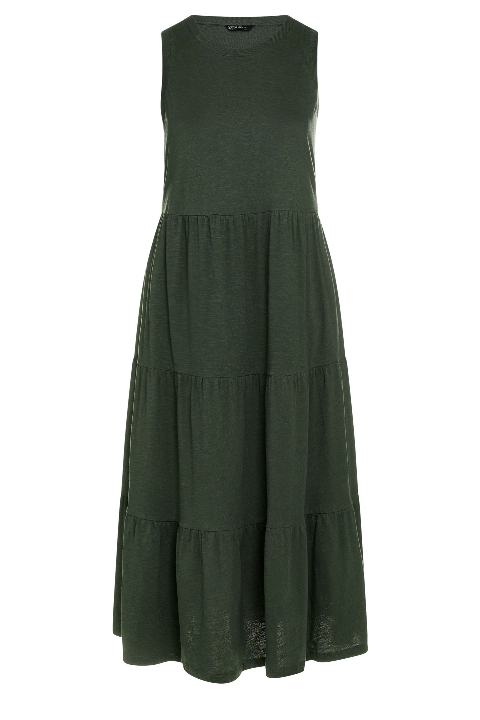 YOURS Curve Khaki Green Tiered Midaxi Dress 259101