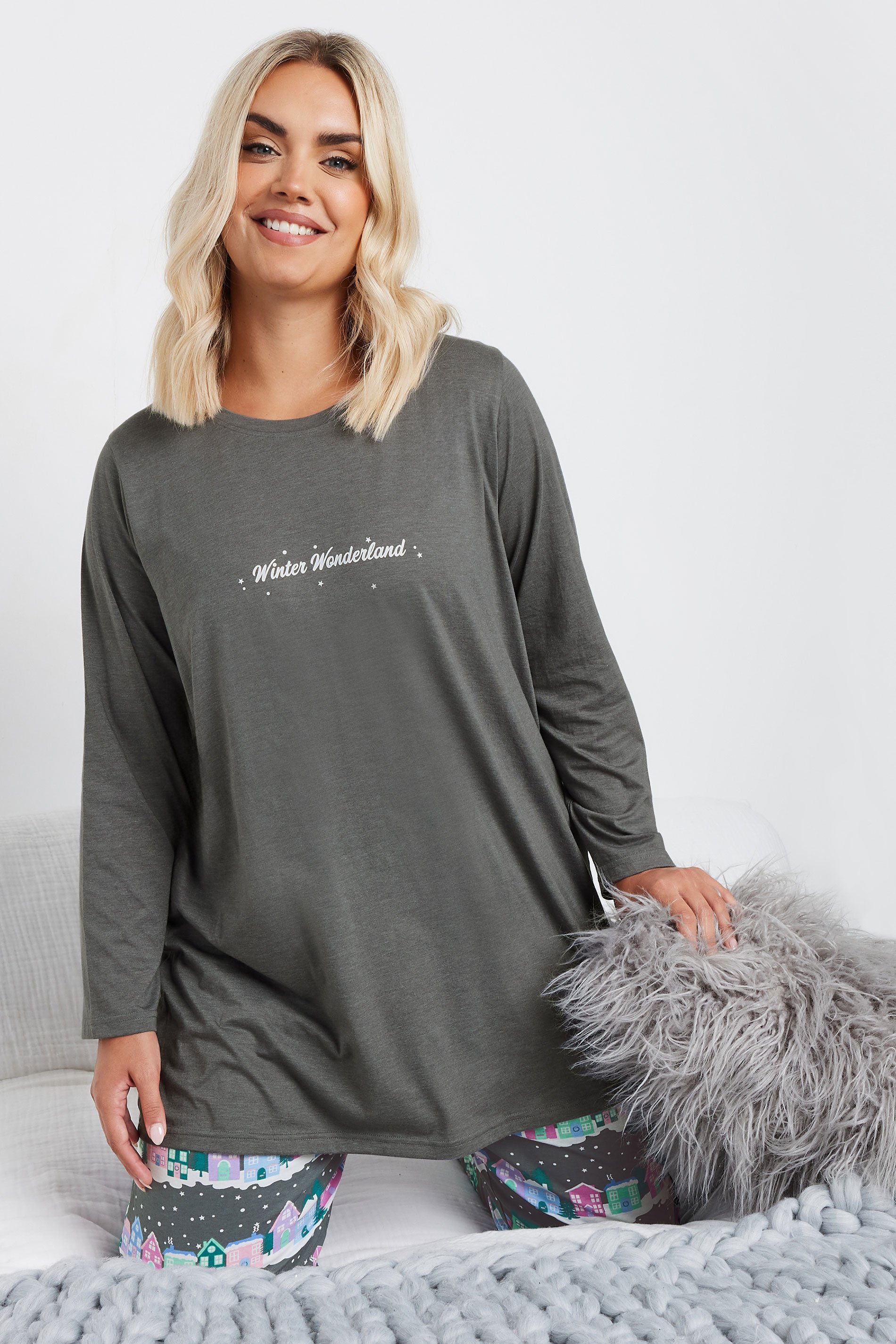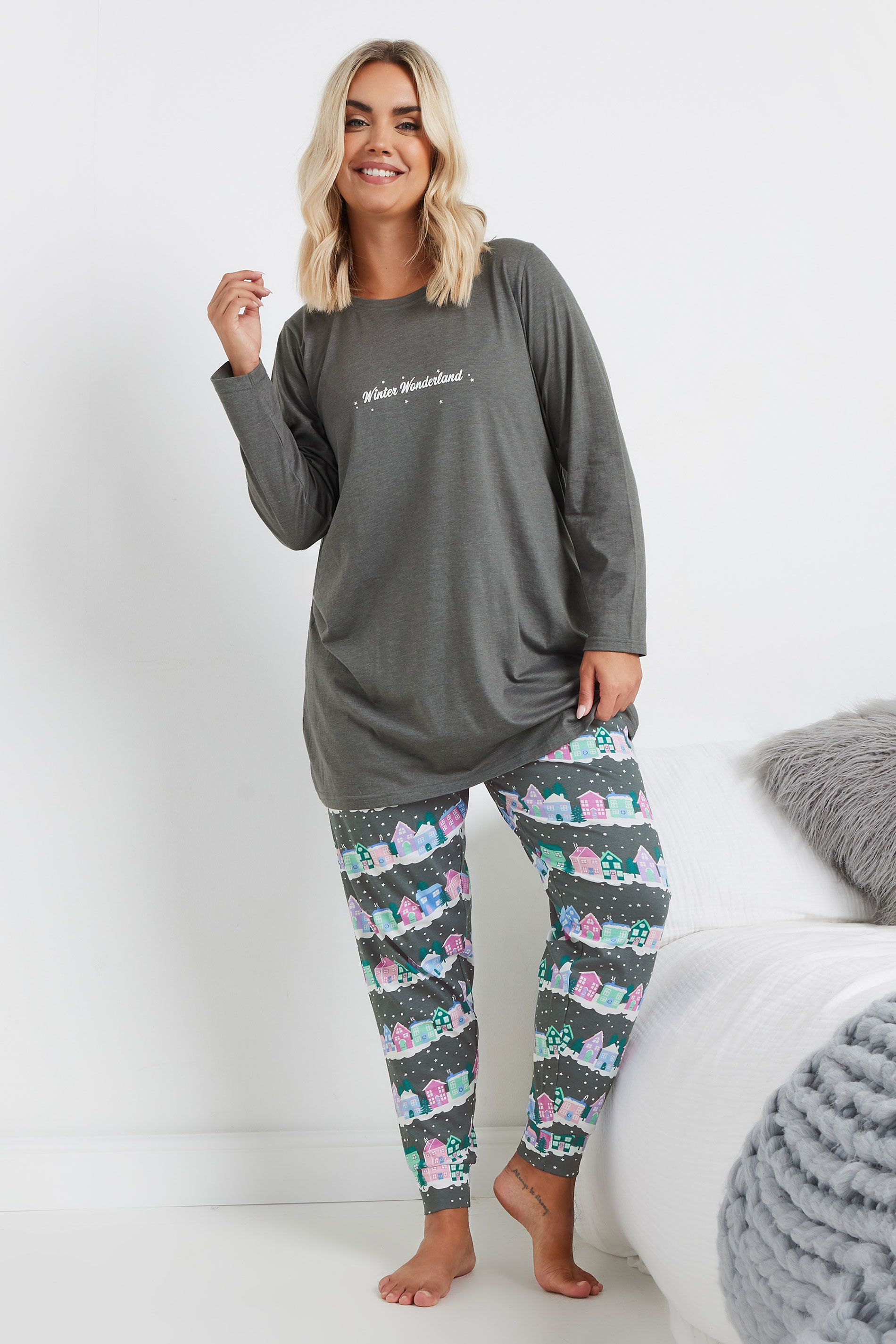 Sleep in style this season with our new-in cuffed pyjama set! Made from a cotton blend fabric, they feature a 'Winter Wonderland' slogan print, printed cuffed trousers, long sleeves, and an elasticated waistband for the perfect fit! Simply pair with your favourite slippers.